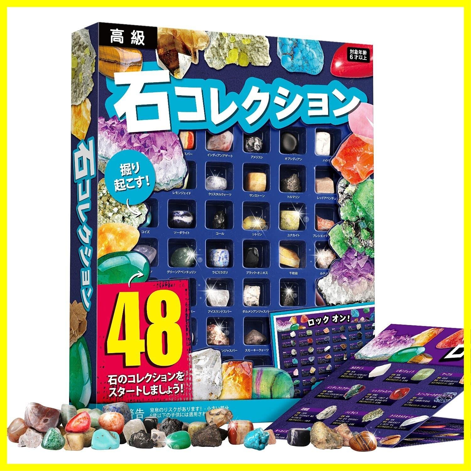 完備なコレクションセット:中には48種類の異なる岩石鉱物、1枚の学習ポスターがあります。ロックの種類が多いだけではなく、それらを知るための資料もありますよ