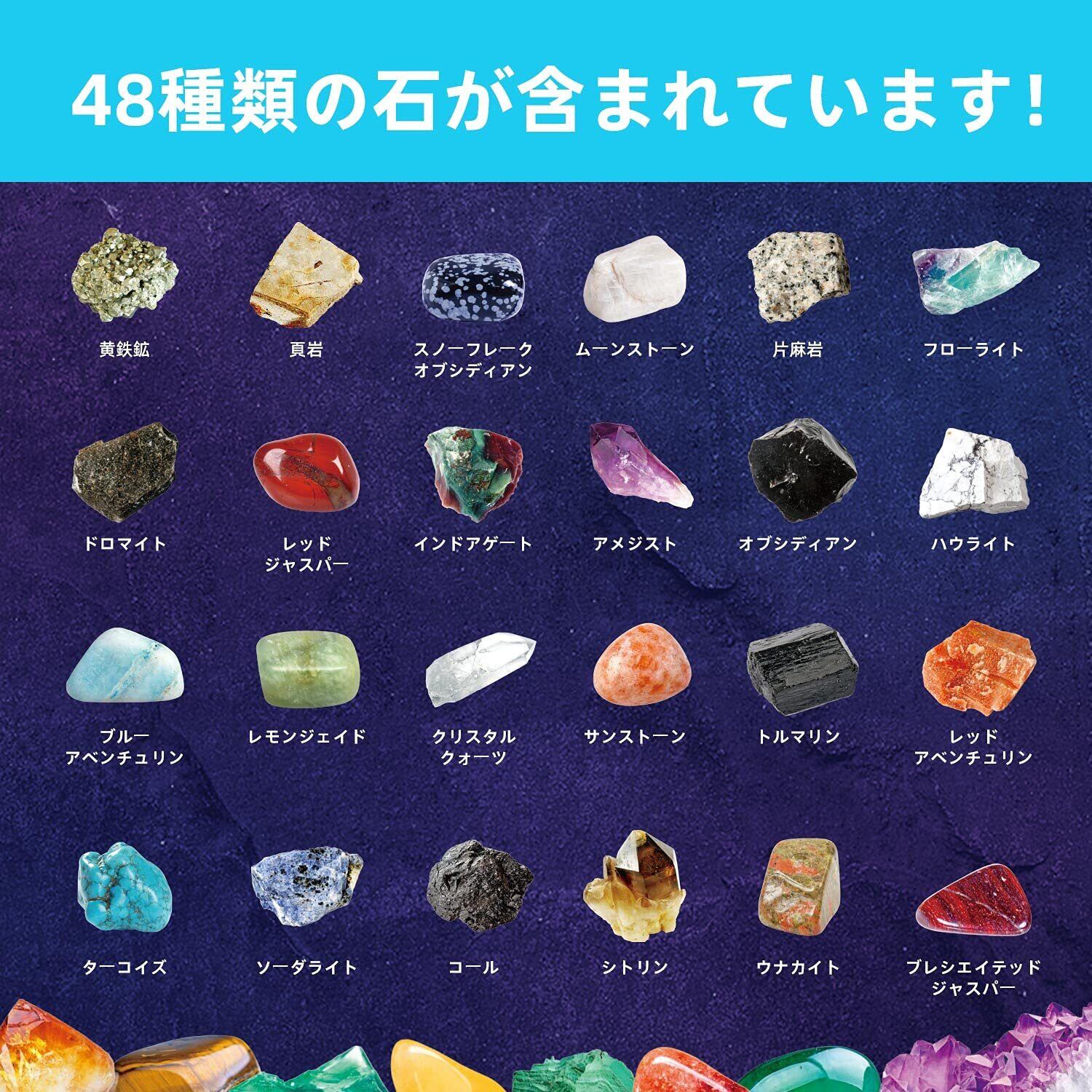 XXTOYS 鉱石標本48種 天然鉱石 宝石おもちゃ 岩石標本 クリスマス プレゼント ロック&ミネラル コレクション ジェムストーン 地質科学キット 48個セット アメジスト 子供 ギフト(日本語版)