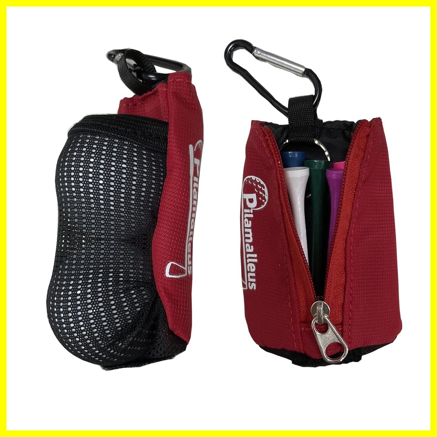 Sitengle ゴルフボールケース 2個入れ ティー収納 軽量ゴルフポーチ カラビナ付き ゴルフボール入れ ゴルフ用品 ゴルフアクセサリー ティーケース ティーホルダー