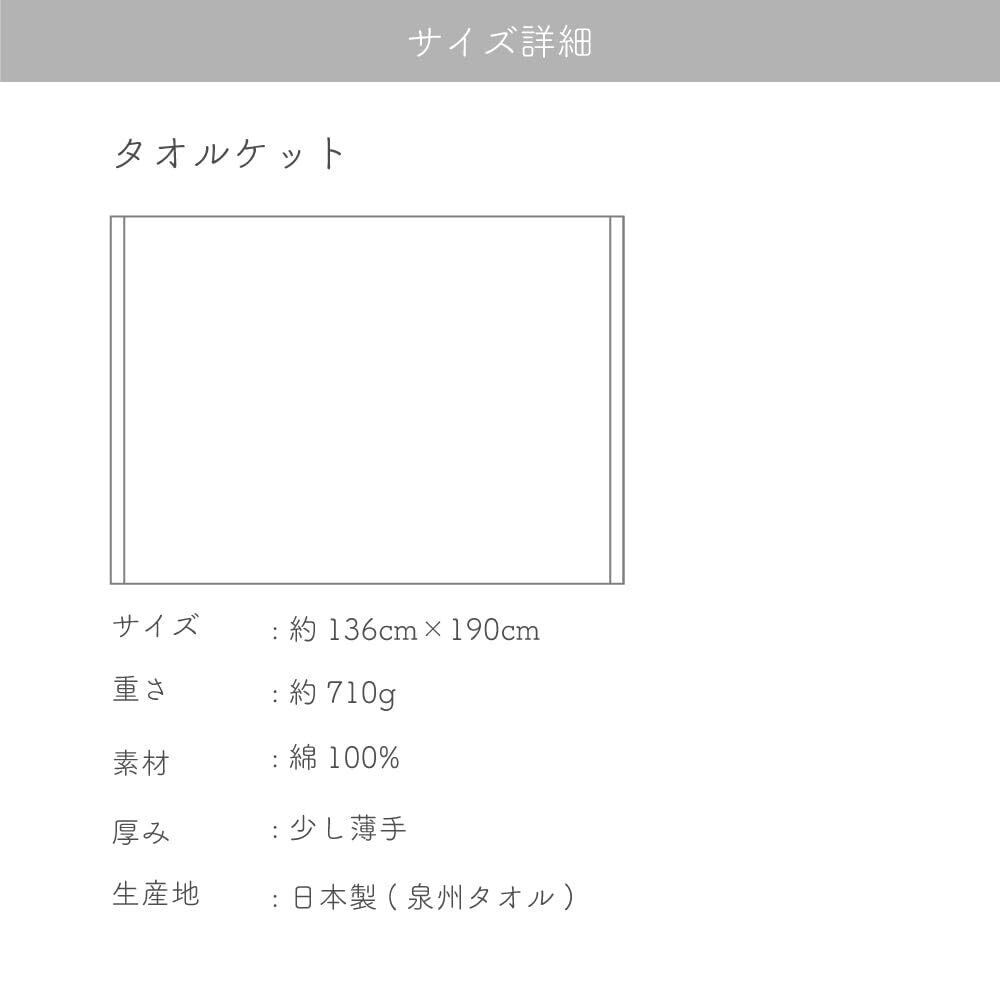 【シングルタオルケット1枚】生産地:日本製(泉州タオル) 本体重量:710g(1枚あたり) 本体サイズ:約136×190cm(1枚あたり) 素材 : 綿100%