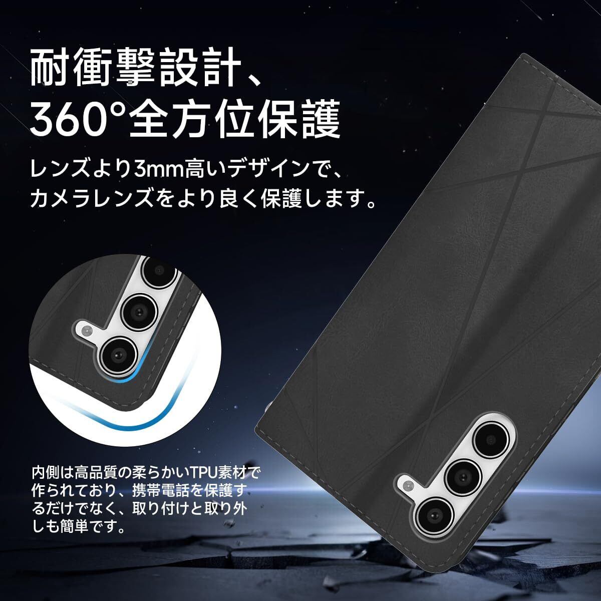 【全面保護、耐衝撃性】プレミアムレザーでオールラウンドにカバー、柔らかい TPU が携帯電話を包みます。携帯電話がどの角度で落ちても、携帯電話をしっかり保護できます。高品質のレザーは指紋や傷も防ぎます。