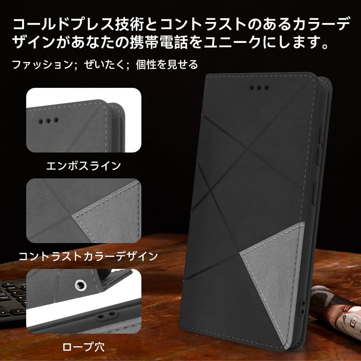 【スタイリッシュな外観デザイン】コールドプレス加工により革がより立体的になり、手触りが良くなります。コントラストのあるカラーデザインで単調にならず、2色の組み合わせがおしゃれ感を高めます。シンプルなデザインを使用して、ファッションと高級感を表現します。ストラップホールを搭載しているので、お好みのストラップをつけて、をよりおしゃれに飾れます。