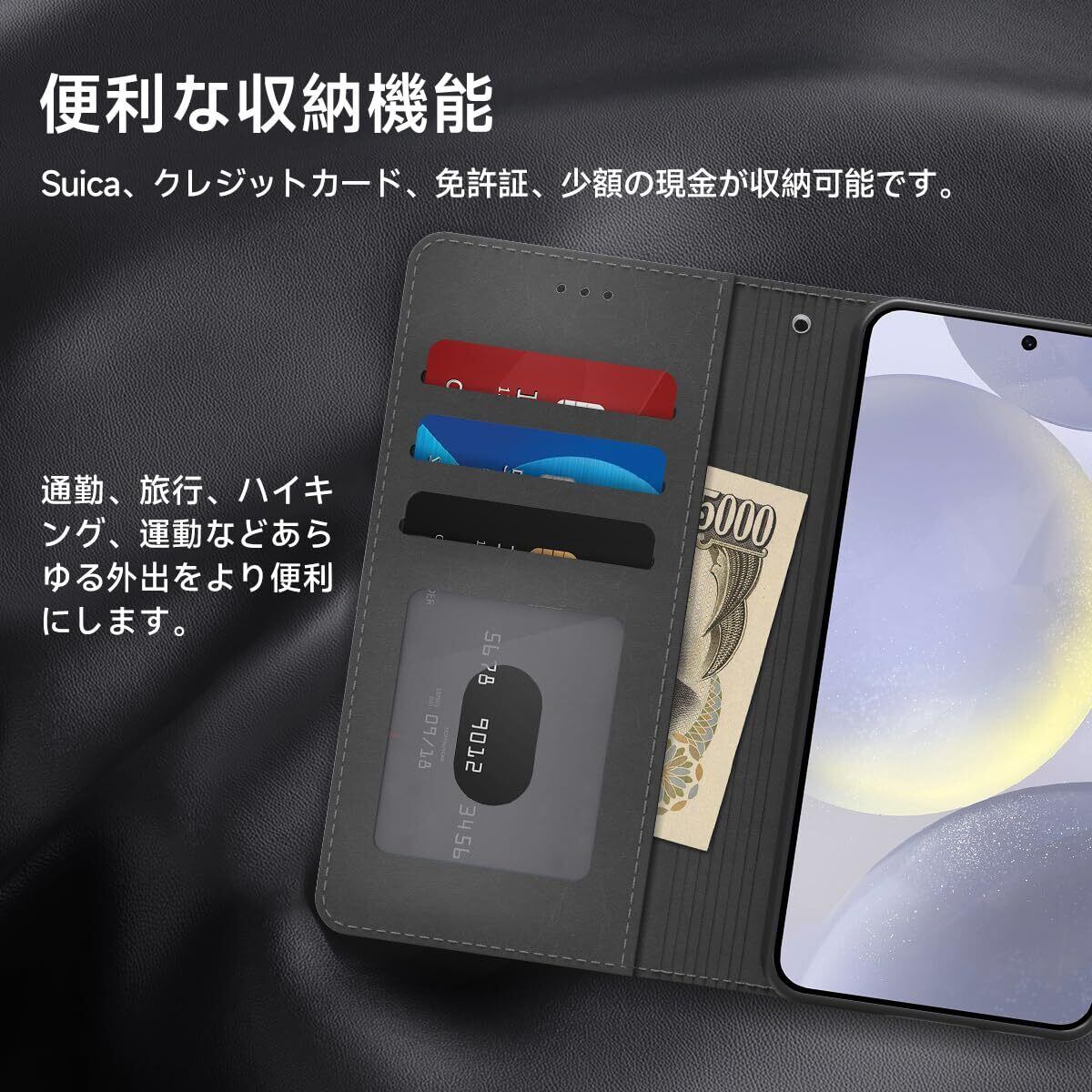 【使いやすい、便利な収納設計】横置きスタンド機能た付いて、映画鑑賞、仕事、勉強に便利です。ケースの裏側にカードポケット3つ, お札入れポケット一つ、写真、クレジットカード、Suica、クレジットカード、少額の現金を収納可能。マグネット開閉デザイン、開け閉めしやすく、使いやすいです、貴重品を守る。これにより両手が解放され、生活や旅行がより便利になります。