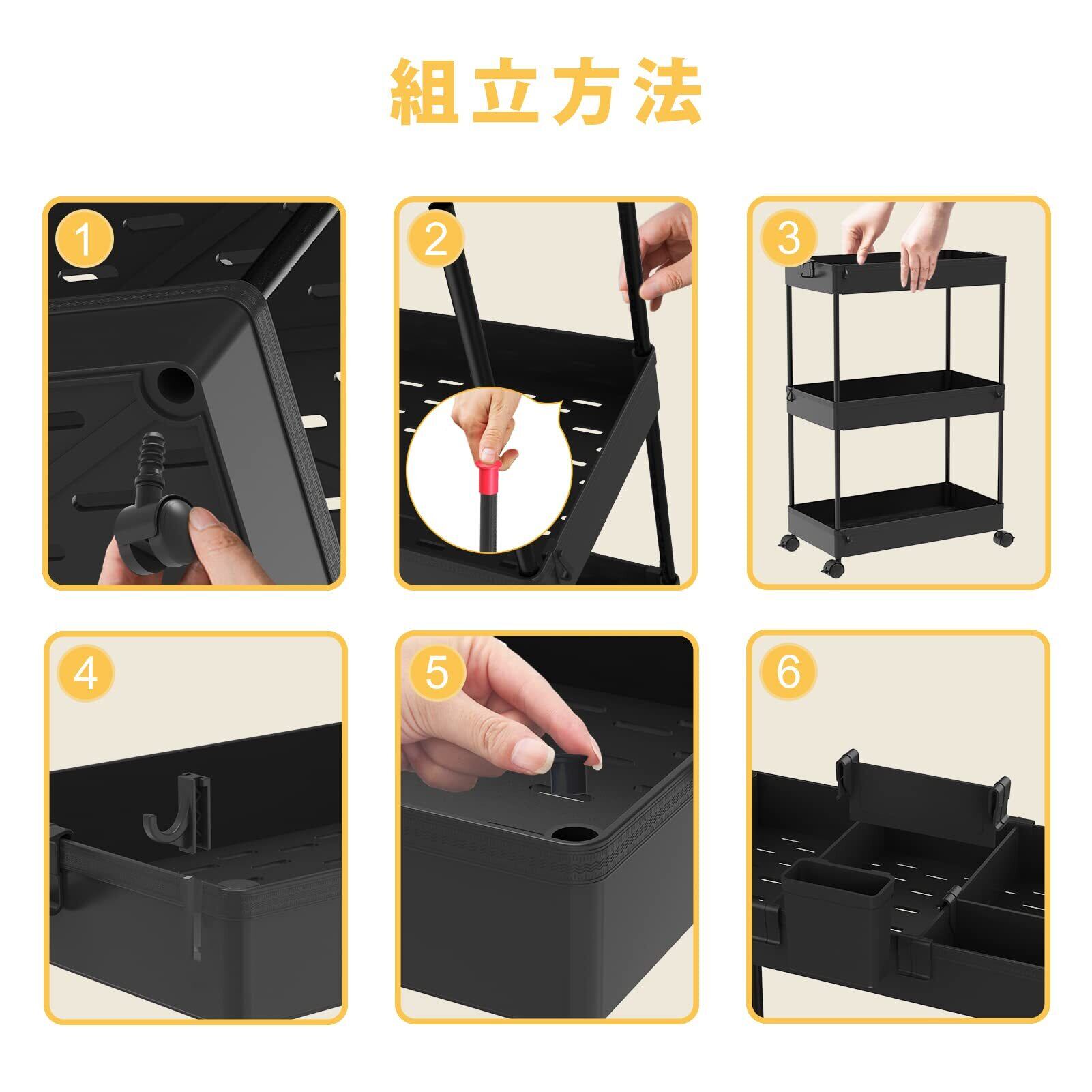 【組み立て簡単】このキッチンワゴンは組み立て簡単、女性一人でも組み立てられます。説明書に組み立て図解もあります。
