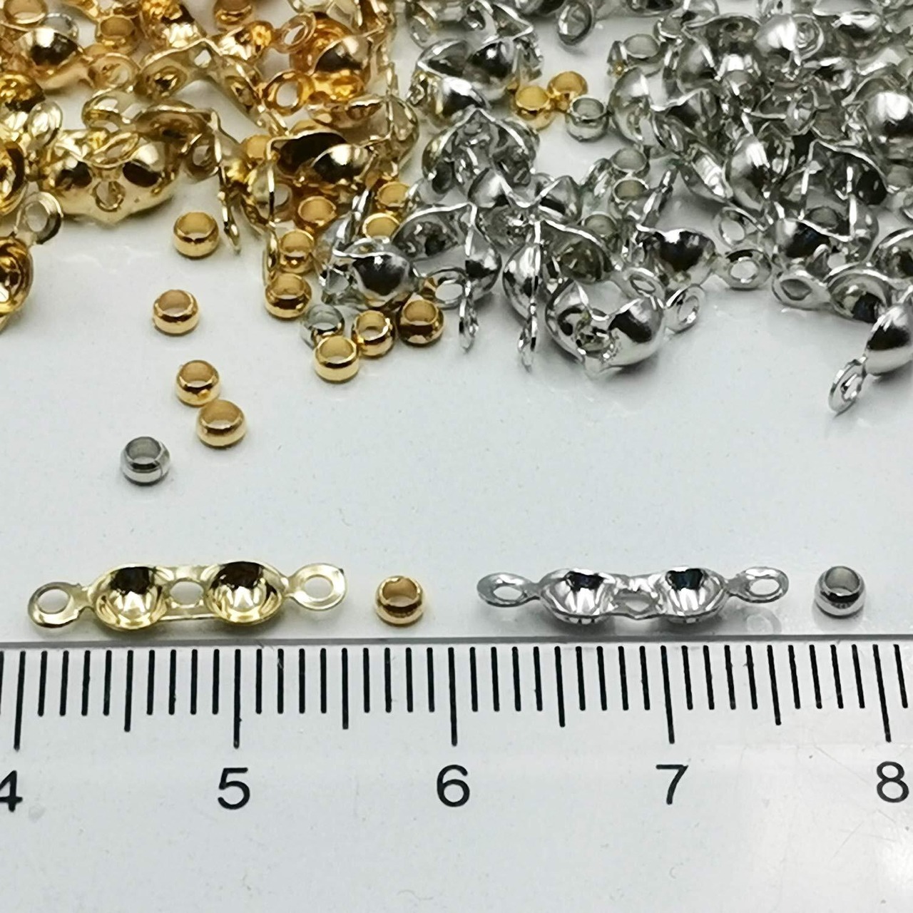 使用場合:テグス・ワイヤー・糸の端処理はコレでOK!カン付きなので、他のパーツとの接続にも大活躍◎お好みの金具を取り付けてね。ジュエリー修復、手作りアクセサリー、ハンドメイド作品への飾り付け、DIYなど様々な用途にお使いいただけます。