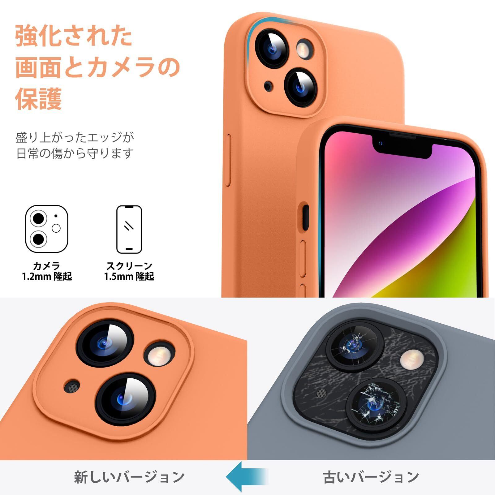 Supdeal iPhone 14 ケース 対応液体シリコン [耐衝撃] [柔軟TPU液体シリコン] [ソフトタッチ] [レンズの全面保護] [指紋防止] [落下防止] [滑り防止] 軽量 4層保護 アイフォン 14 スマホカバー 6.1インチ(オレンジ)