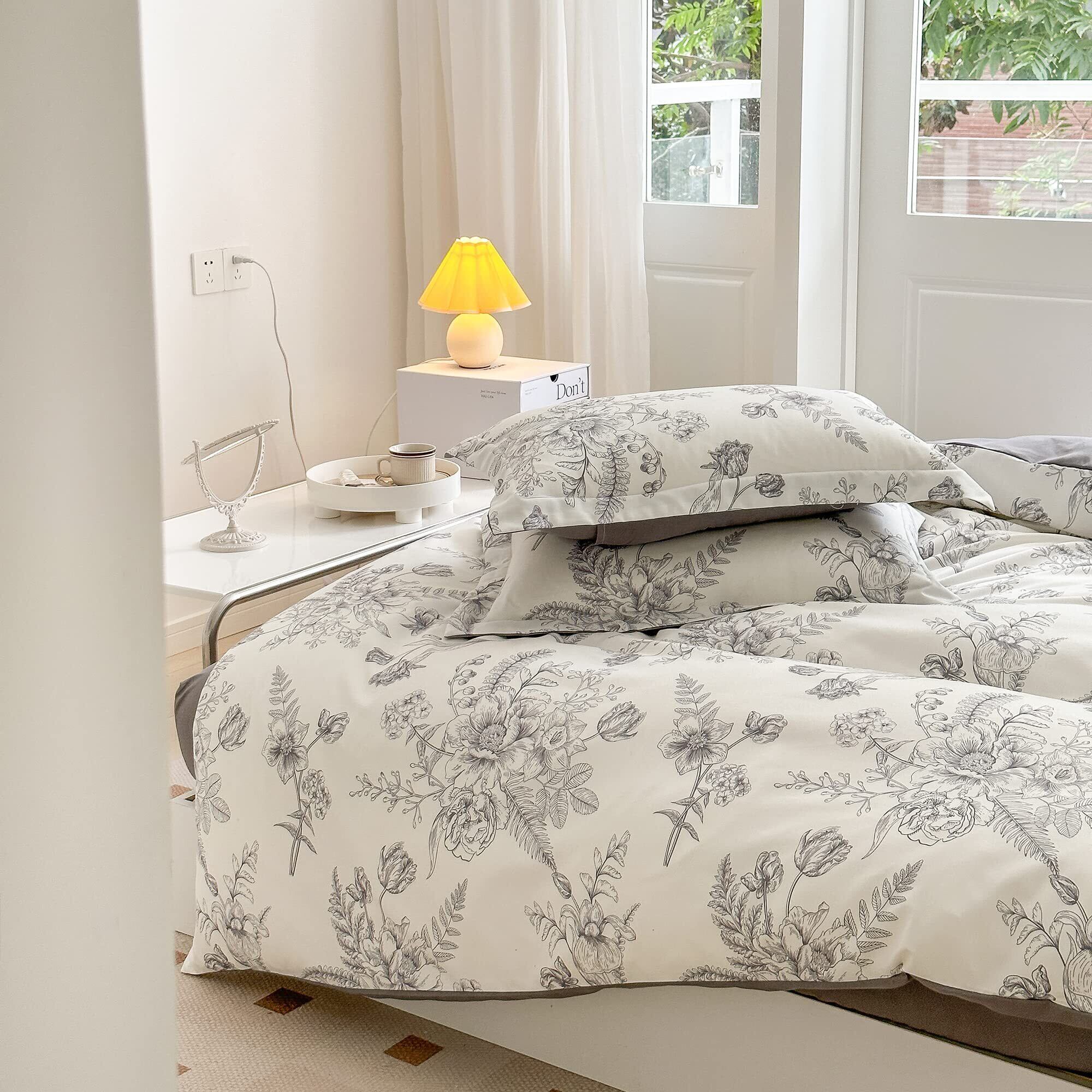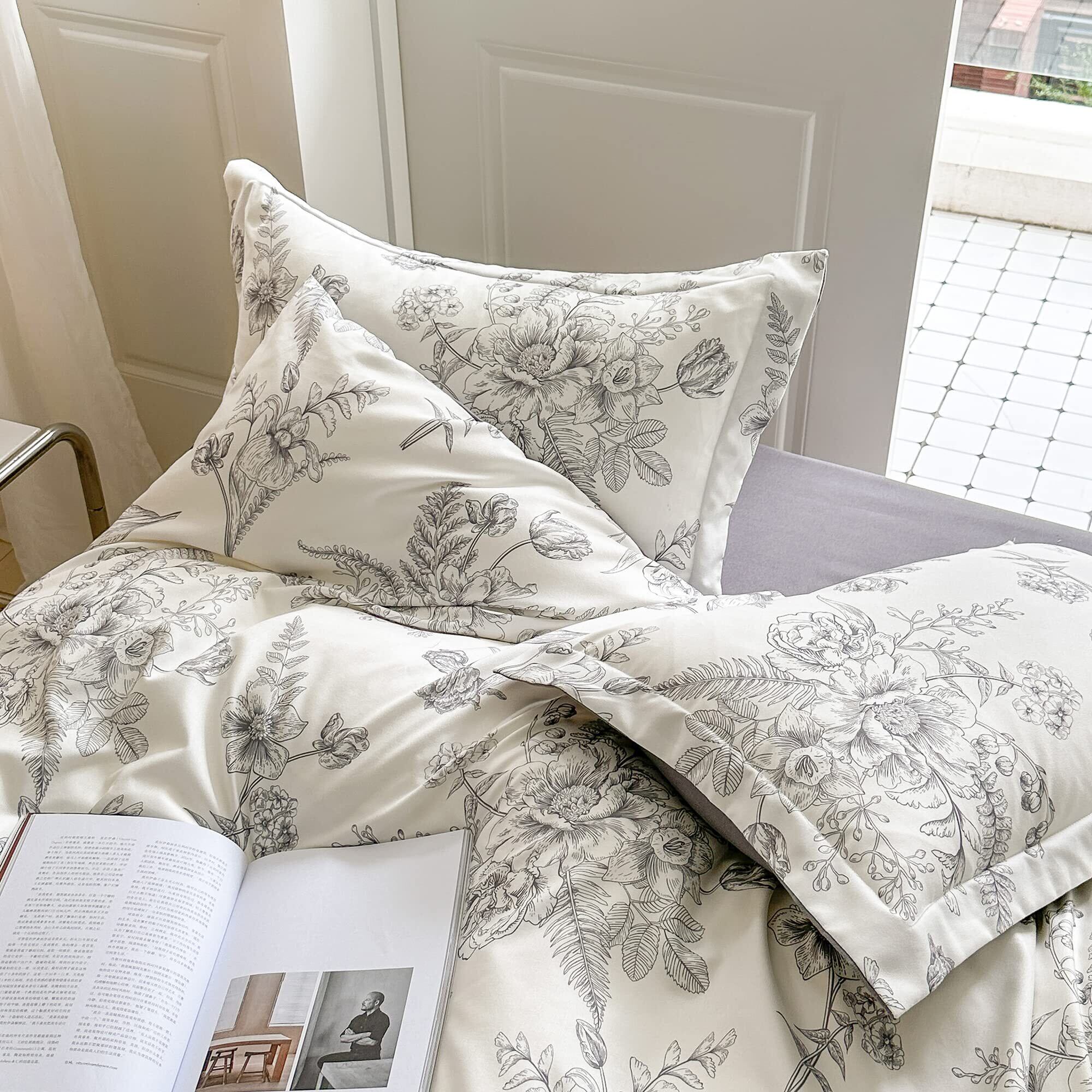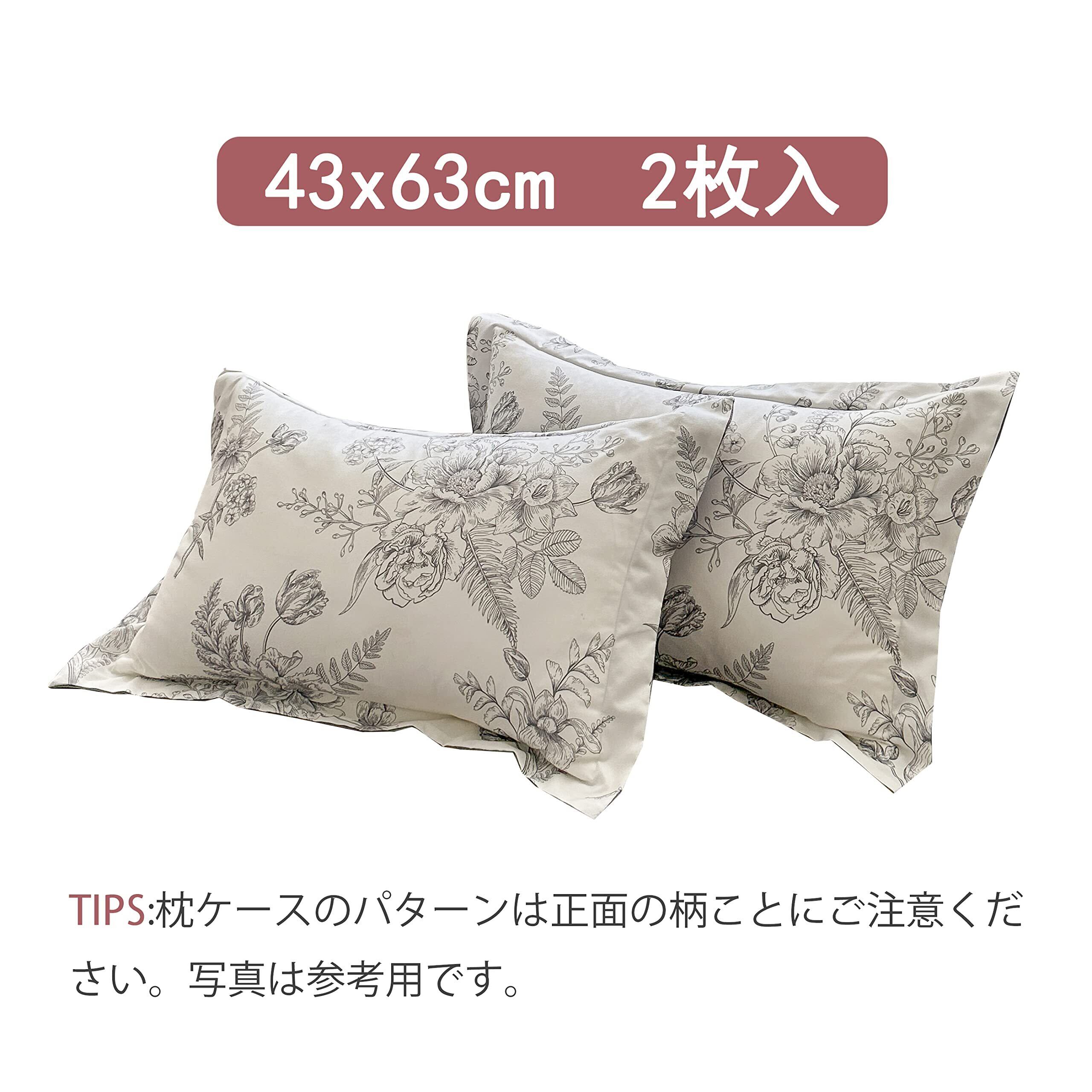布団カバー 花柄 掛け布団カバー 寝具カバー 花柄 おしゃれ ダブルファスナー (布団カバー 単品販売) (【枕カバー】43x63cm, black)