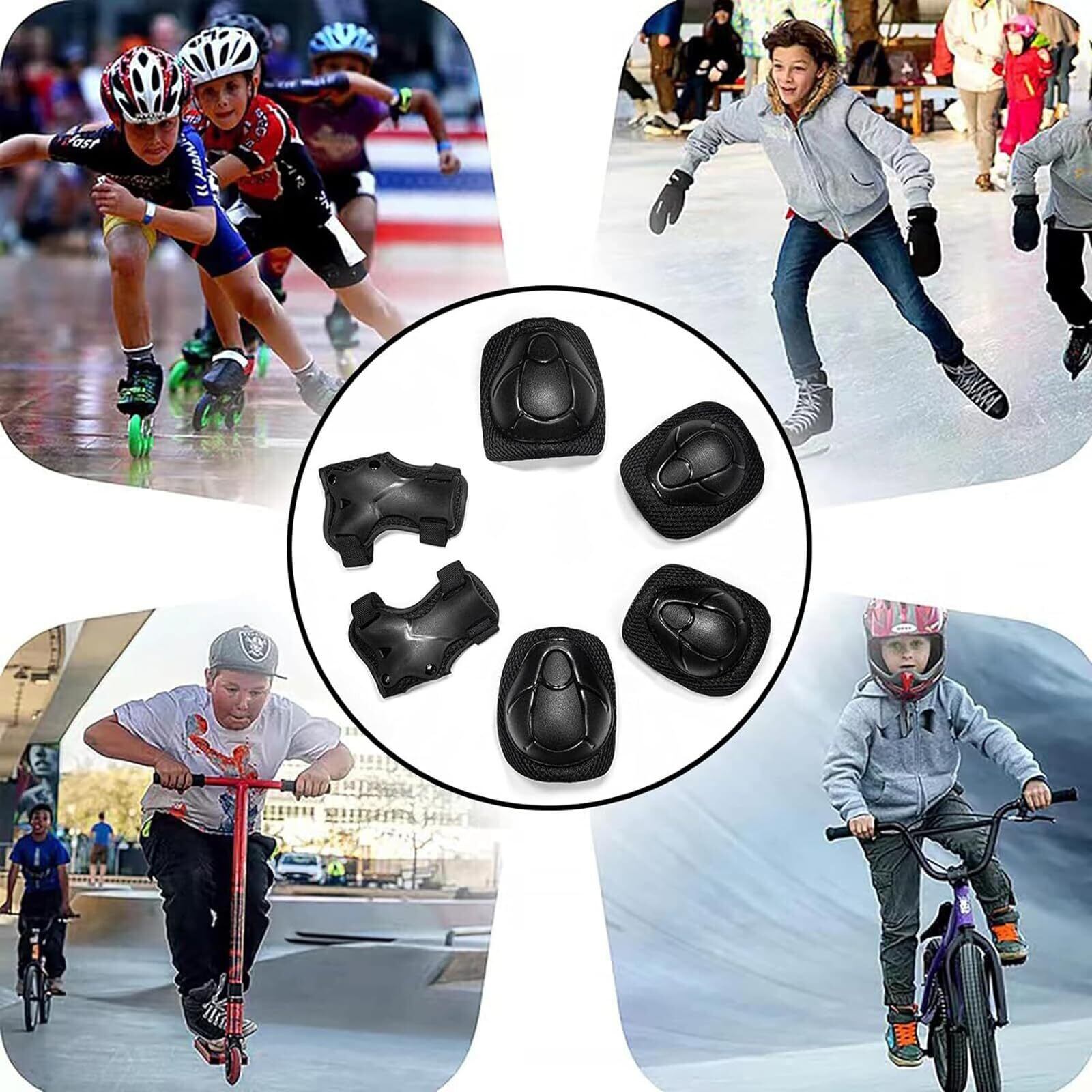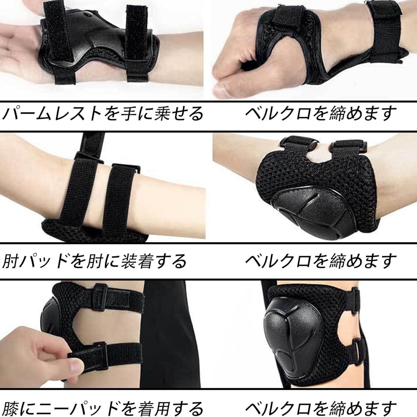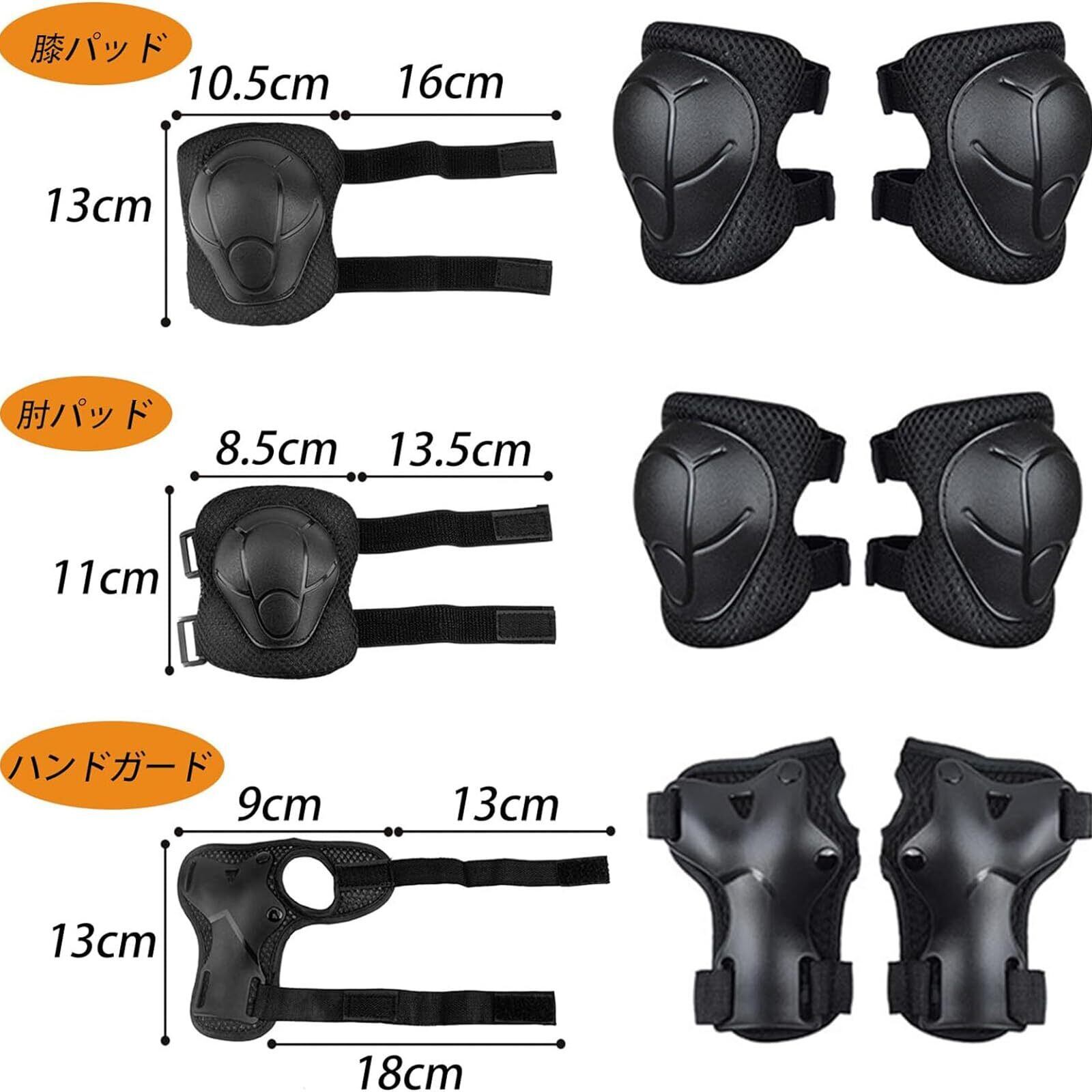 【安心6点セット】肘・膝・手の平を守るプロテクターとなります!6点セットなので安心!転倒時の怪我から身を守ります!初心者には必須のアイテムです。きちんと防具を付けて、安全に遊びましょう。