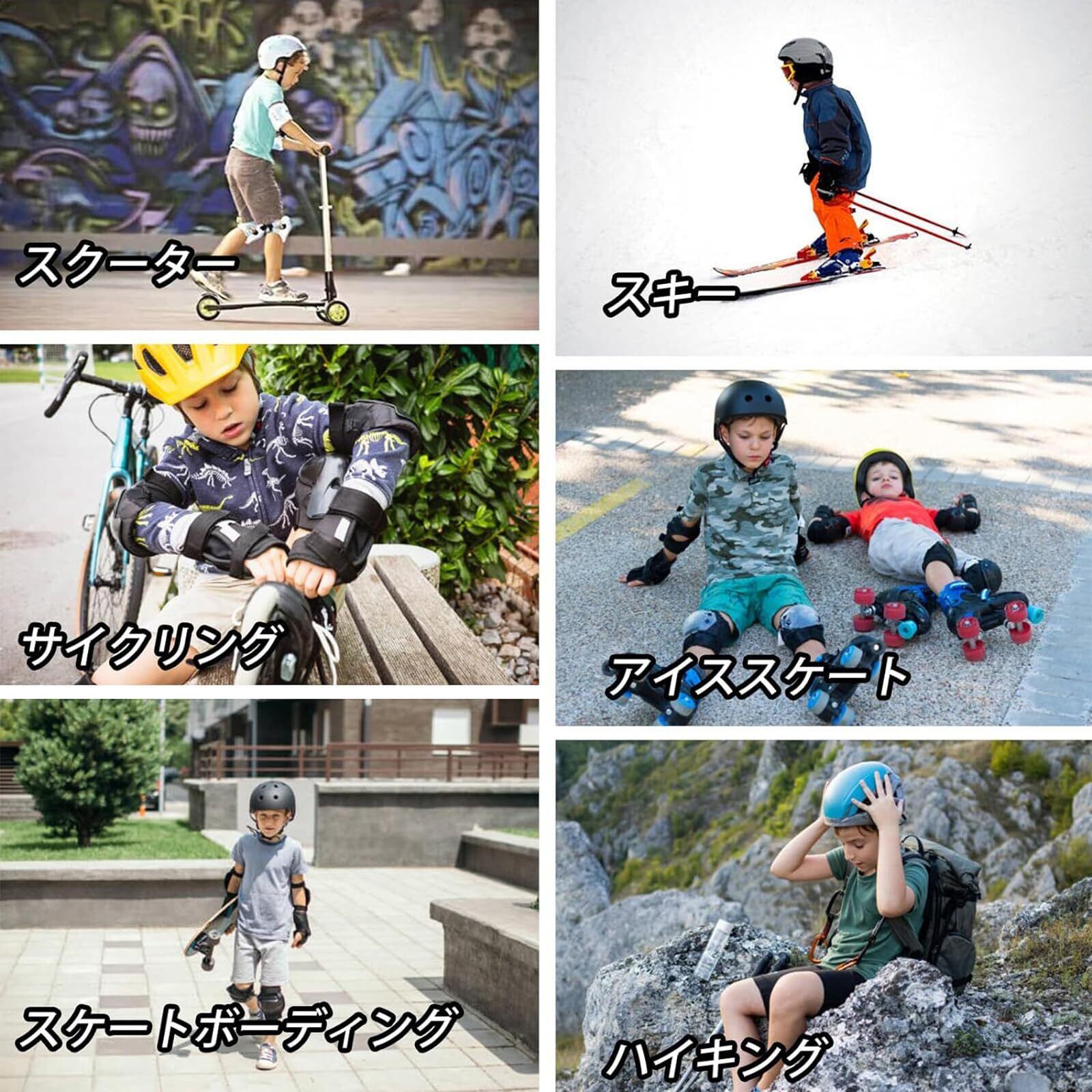 【幅広くお使い】自転車、スケートボード、ローラースケート、インラインスケート、一輪車、ストライダー、サイクリング、スキーなど様々なシーンで、子供用なスポーツプロテクターを着用して、お子様のご安全をしっかりと守ります。