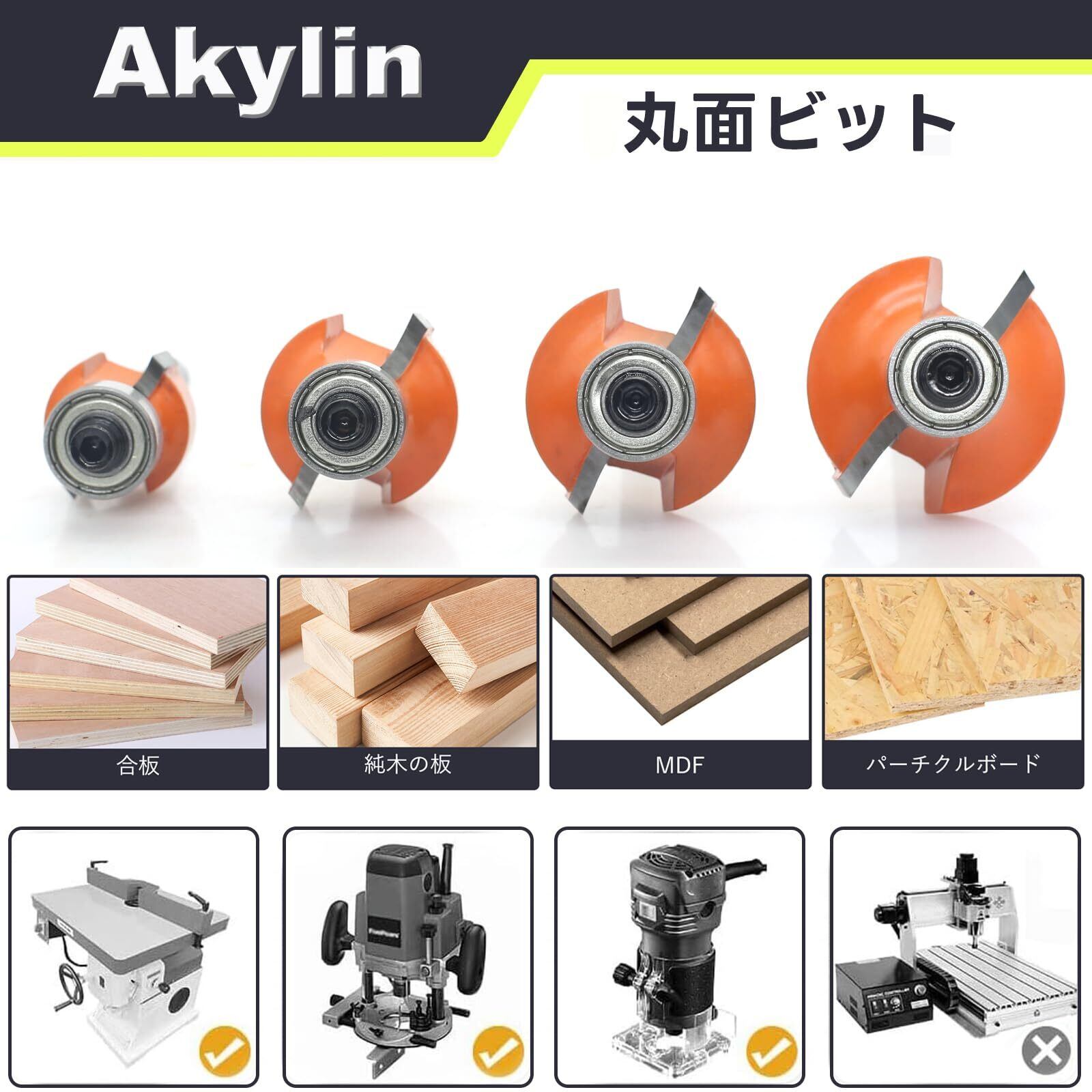 【対応範囲】適切な材料タイプ:広葉樹、無垢材、パーティクルボード、MDF、アクリルなど木材に適応します。 *鋼、鉄、砂などの非木材材料に適していない!