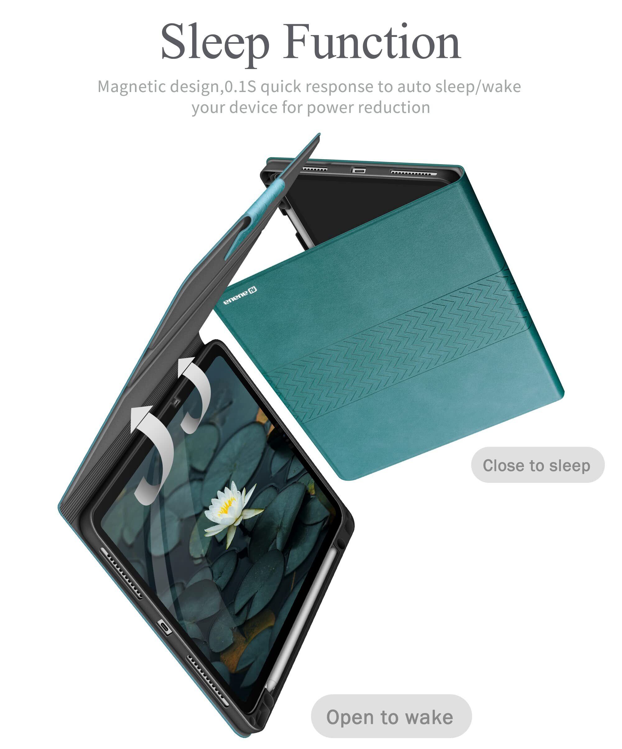 auaua iPad Pro 12.9インチ ケース 2022/2021/2020/2018 ペン収納 PUレザー 手帳型 ひび割れ防止 耐衝撃 オートスリープ&スタンド機能付き 全面保護 iPad Pro 12.9 第6/5/4/3世代兼用 (グリーン)