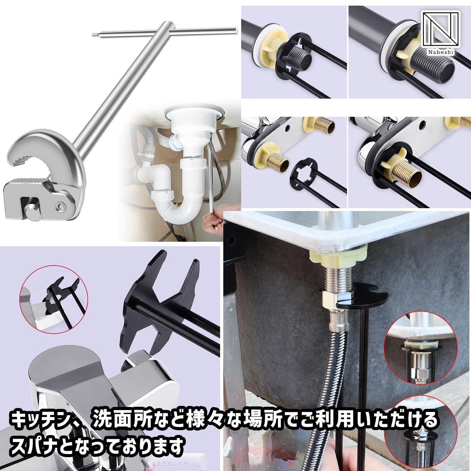 【シンクレンチセット】シンクレンチのセットです。水回り関係の脱着工具としてご利用ください。キッチン、洗面所など様々な場所でご利用いただけるスパナとなっております。