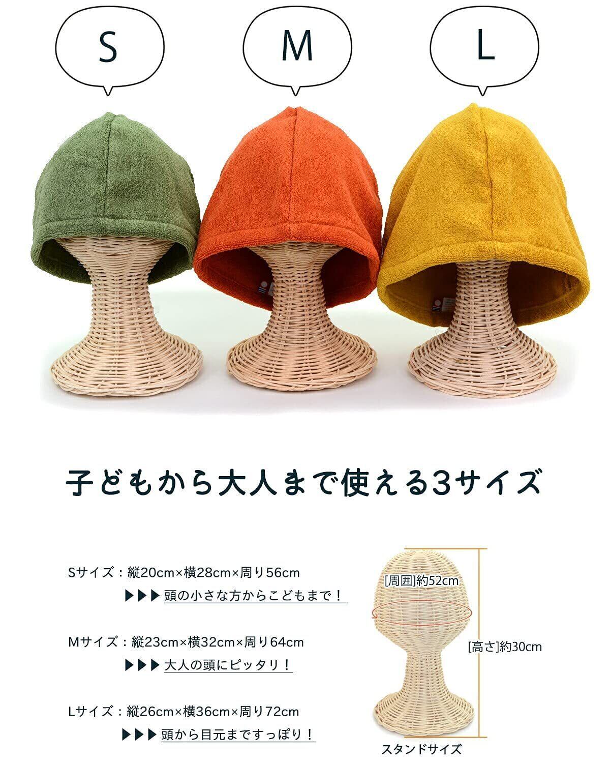 【Sサイズ】超小顔の方や、お子様向け。【Mサイズ】女性の方や小顔の方、ピッタリ被りたい方向け。通常のレジャーハットとしてもお使いになれます。【Lサイズ】耳元まですっぽり被って他人の視線や頭髪の乾燥と熱波の防止、サウナ時間をゆっくり楽しみたい方向けにLサイズと、3サイズからお選びいただけます。