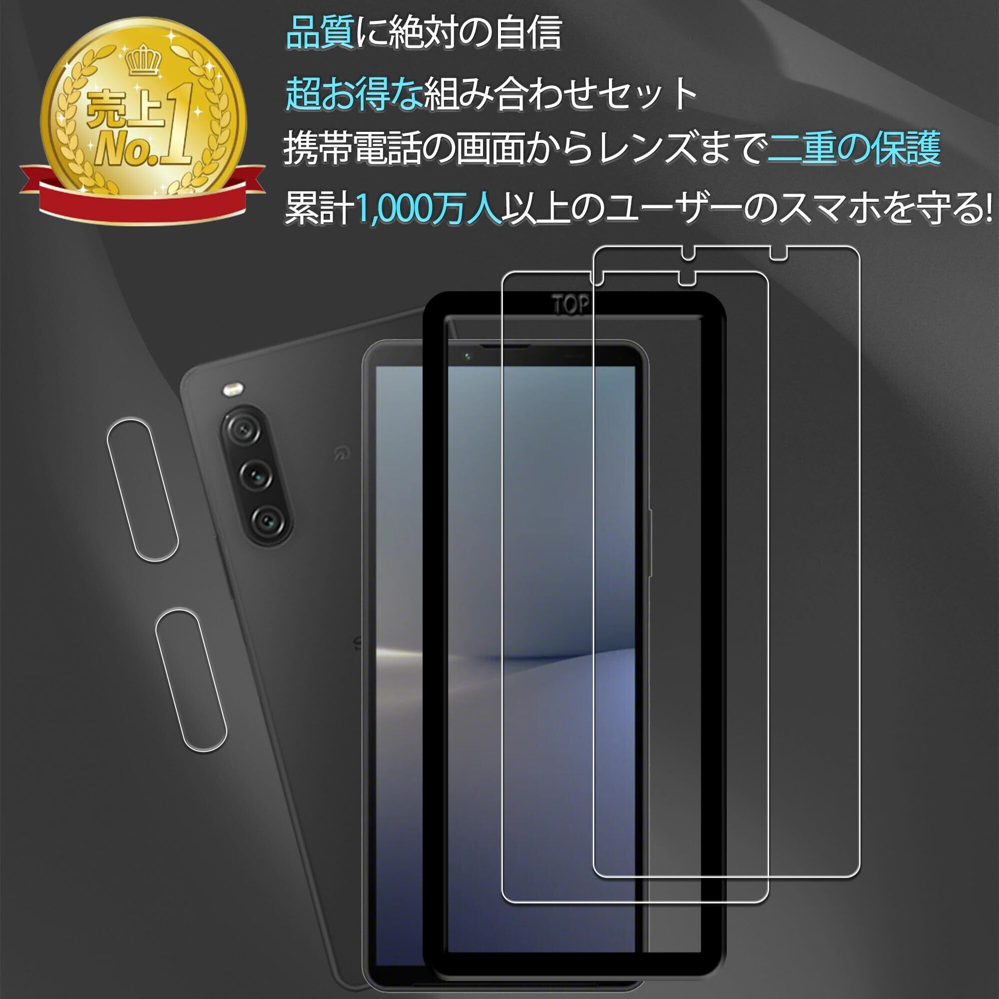 【2+2枚セット】ガイド枠付き KPNS 日本素材製 強化ガラス Xperia 10 V 2023 SO-52D SOG11 用 ガラスフィルム カメラフィルム カバー 保護フィルム