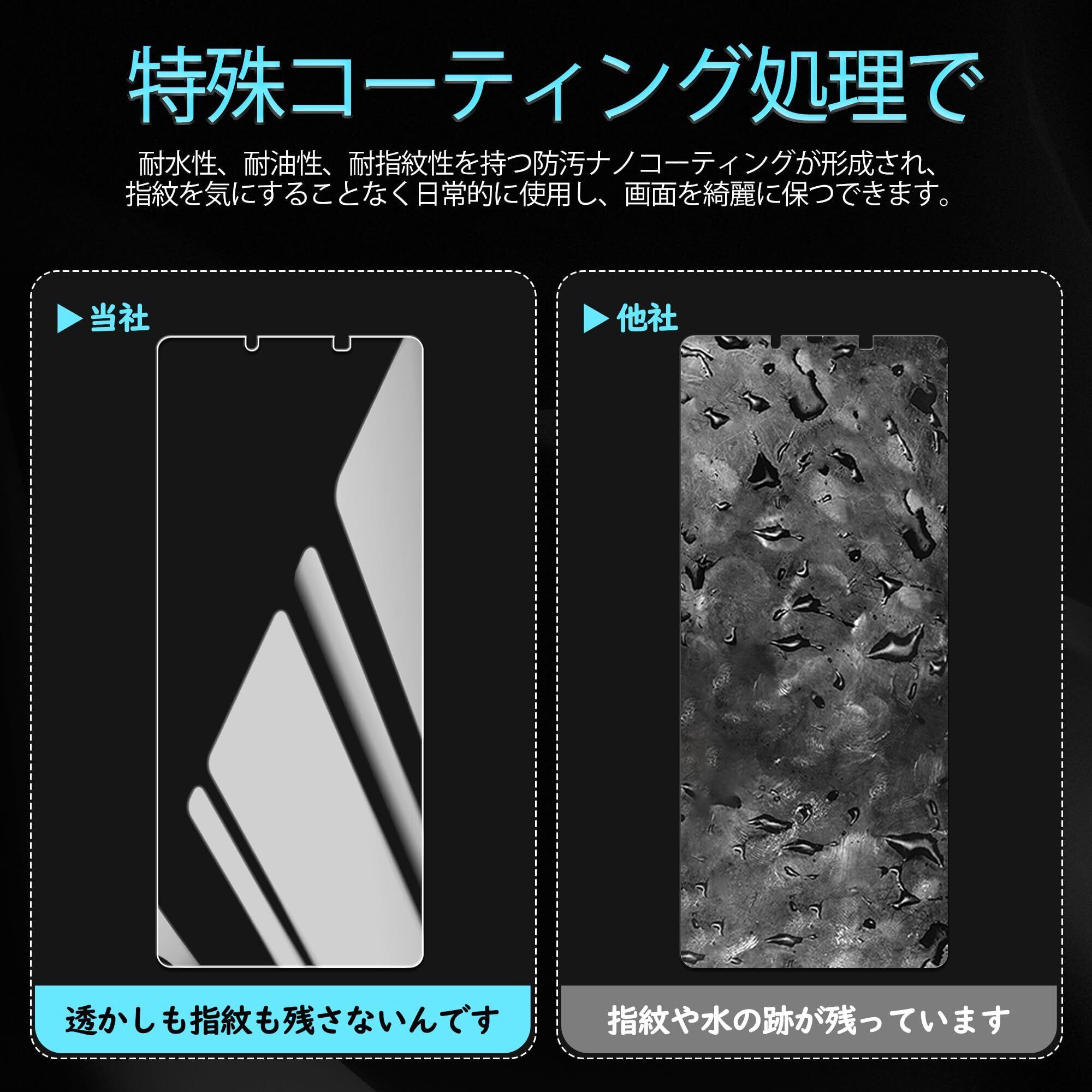 【指紋防止、高感度タッチ】ガラスフィルムには撥油コーティングが施されており、指紋や汚れなどに強くなめらかな操作感を実現、付着した汚れなどは簡単に拭きとれます。こちらは高耐久撥油コーティングが施され、つるつるな滑り感を実現!ゲームしても渋くなし!