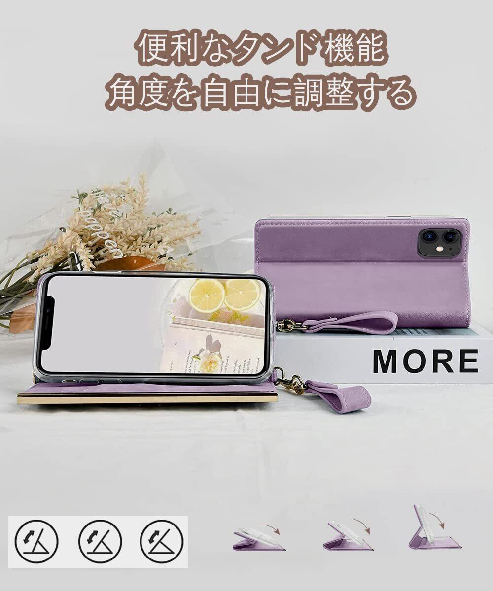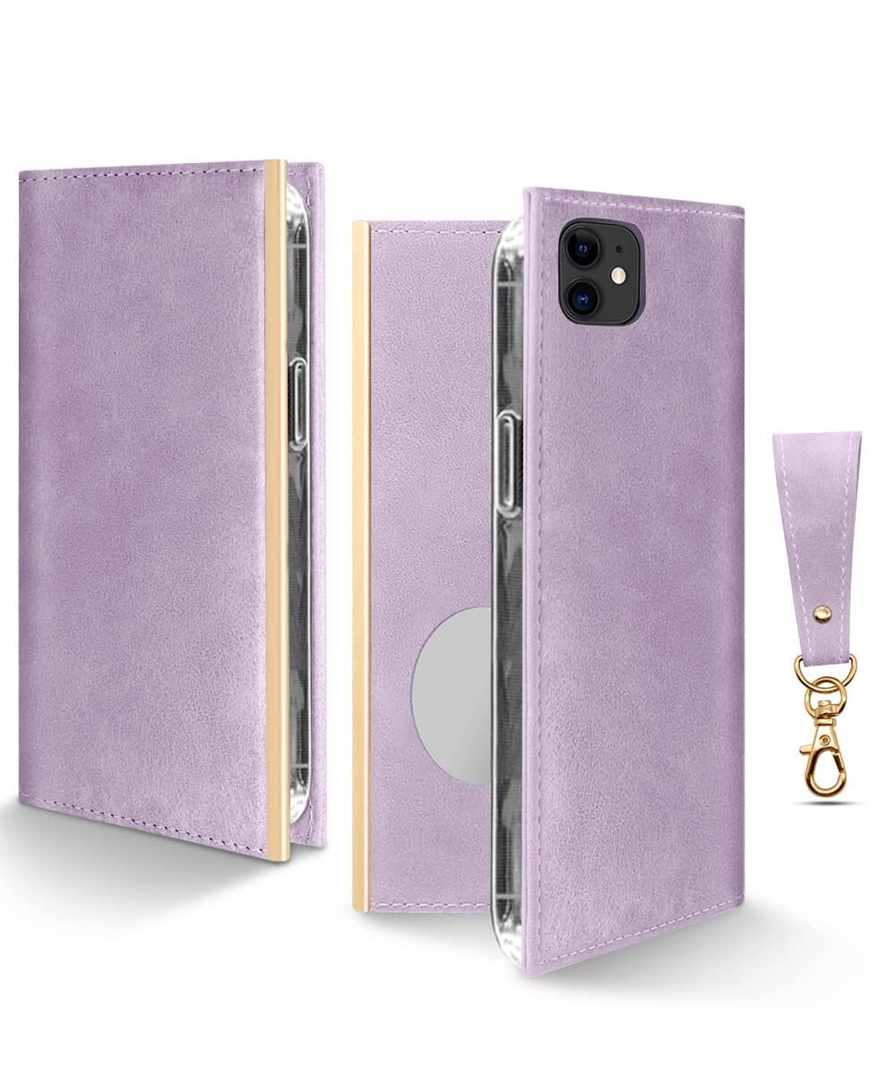 OCTERR iPhone 11 用 ケース 手帳型 鏡付き マグネット式 スマホケース 財布型 アイフォン11カバー カードポケット スタンド機能 携帯ケース ダイアリーケース PUレザー 女性 耐衝撃 全面保護 ファッション おしゃれ 美しい パープル