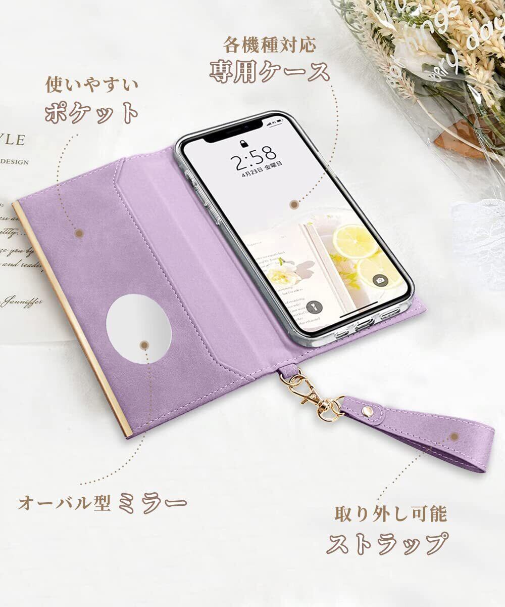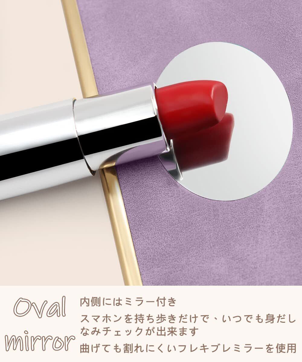 「便利なデザイン」 ①ミラー付き:背面の收纳部分には小さなミラーを配置。食事の後にリップを直したり、気になる前髪のチェックに使ったり...ちょっとした身だしなみの確認に便利なアイテムです。②マグネット付き:マグネット付いて、簡単に開け閉めができるから、片手で開きたい方にもとても便利です。 ③ストラップ付き:カバンの中入れておいてもすぐに携帯電話を見つけることができ、とてもり便利なデザインです 、もちろんケースから取り外すこともできて、お好みのストラップを入れることもできます。
