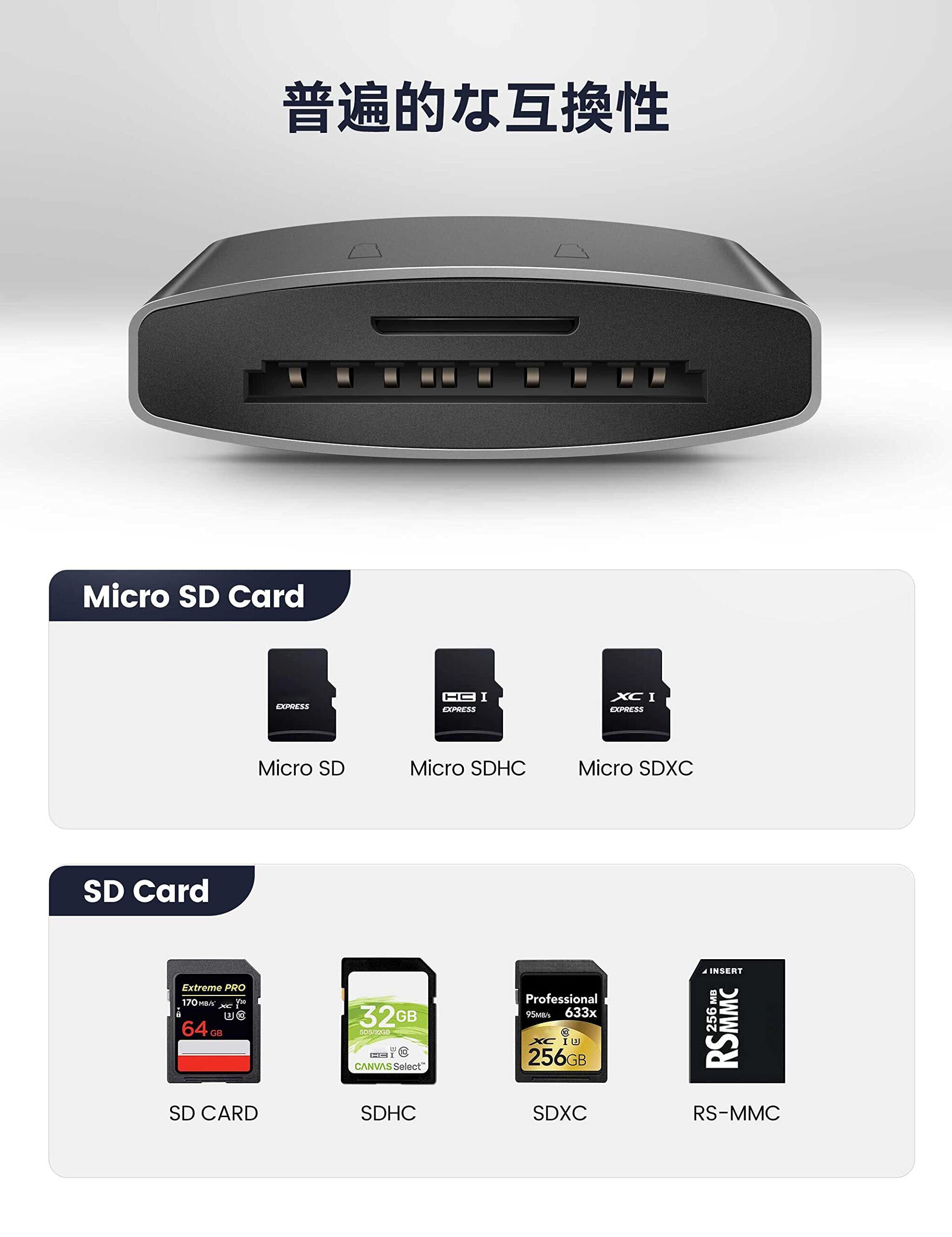 【サポート容量&フォーマット】SDカードリーダーは1TB GB以下の容量をサポートします。 このSDカードアダプターでは、ExfatおよびFat32形式が推奨されます。 iPhone用ChiaoPio SDカードリーダーは、SDカード、SDHC、SDXC、RS-MMC、MicroSD、MicroSDHC、MicroSDXCからのデータを認識します。