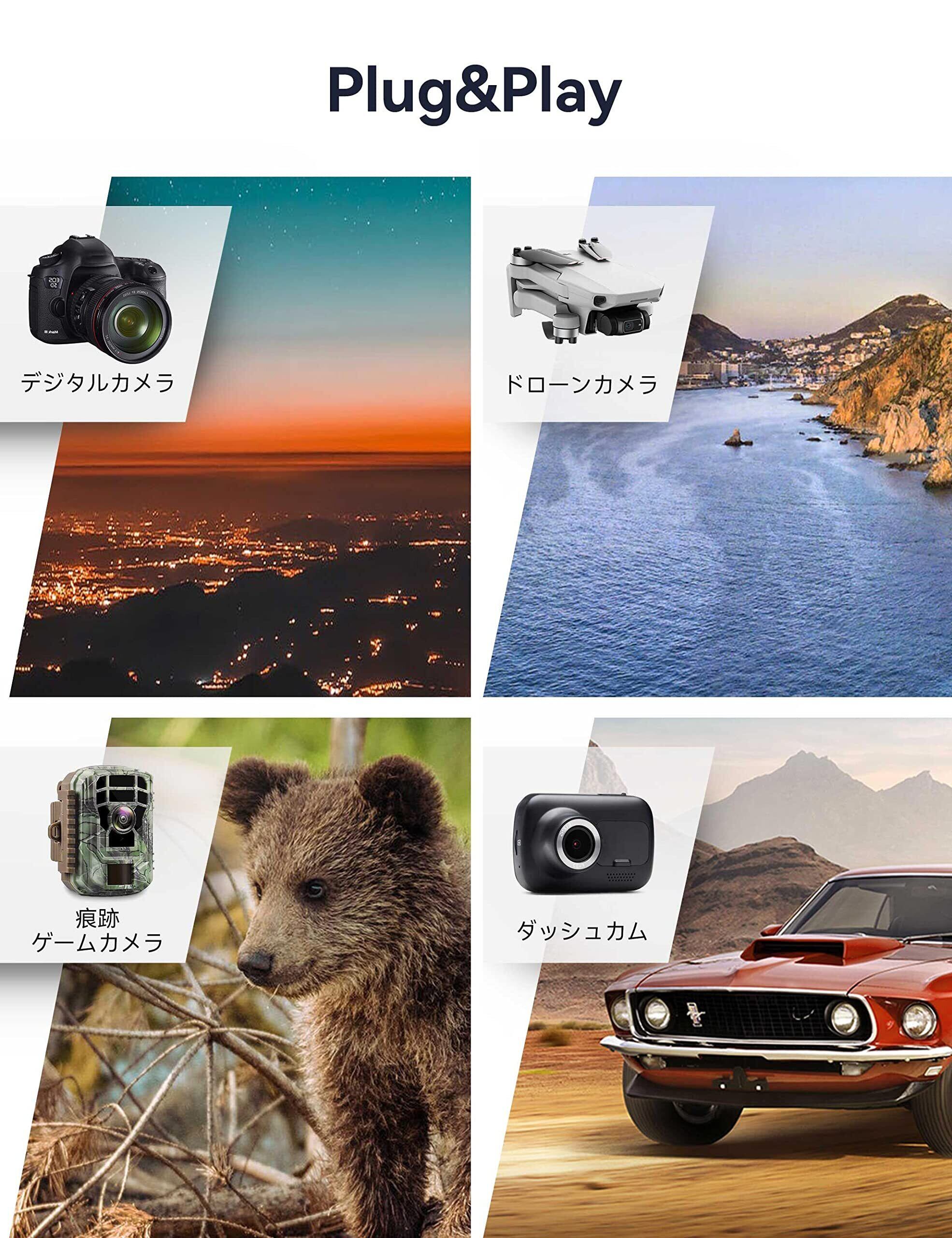 さらに、このiPhone用SDカードリーダーは、デジタルカメラ、ホームセキュリティカメラ、ダッシュボードの最高のパートナーですカム、トレイルカメラなど。