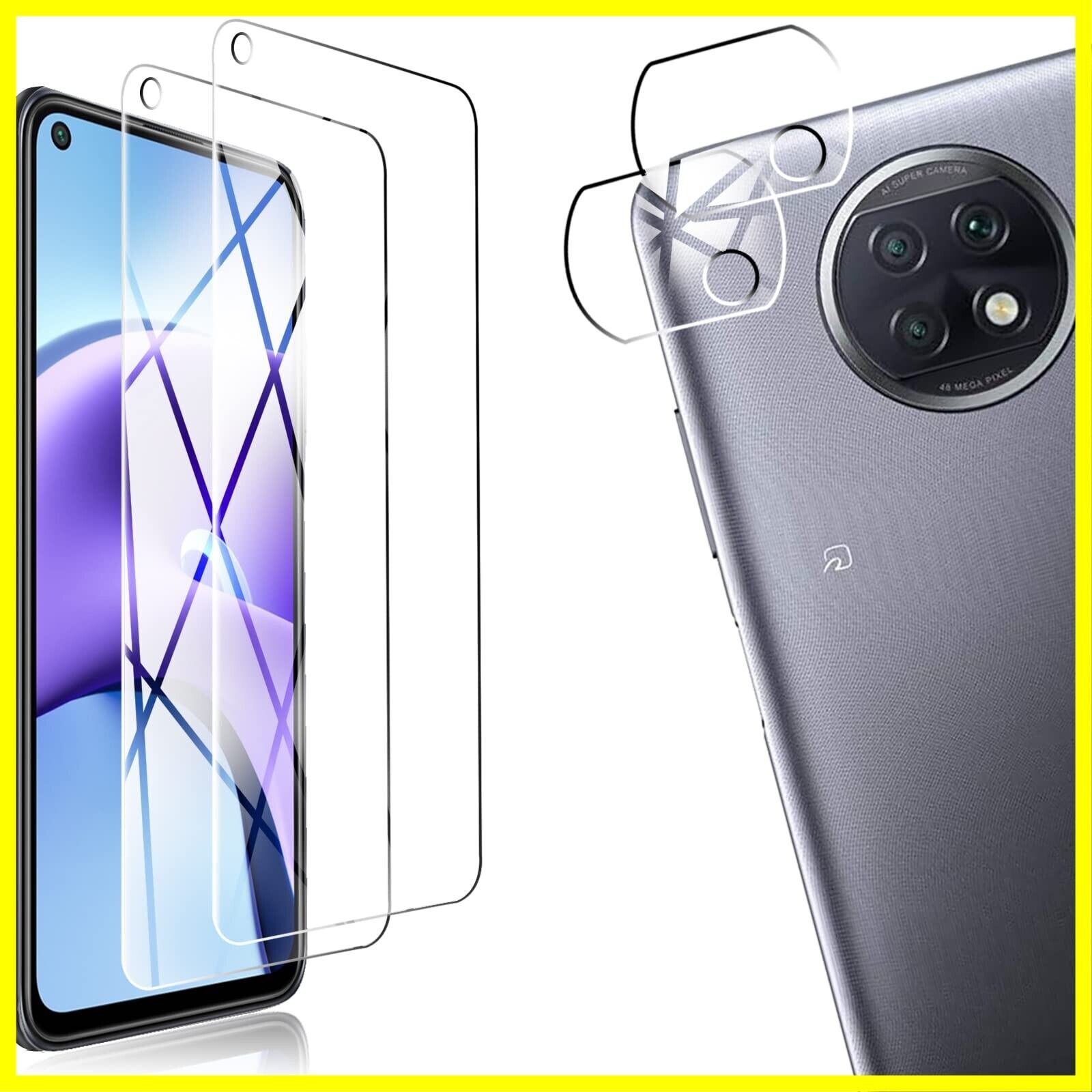 【4枚セット】FOR Xiaomi Redmi Note 9T 5G 2*強化ガラス 2*カメラフィルム 液晶 超薄型 保護フィルム FOR Redmi Note 9T 5G 日本旭硝子素材AGC 高透過率 硬度9H 飛散防止 PCduoduo