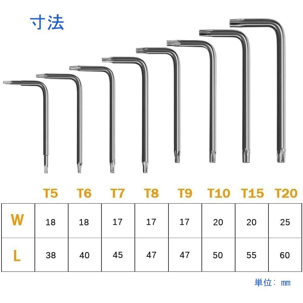 DeeAWai 精密トルクスドライバーセット8本組 T5 T6 T7 T8 T9 T10 T15 T20 L字型 クロムバナジウム鋼 改ざん防止ネジ対応 特殊星型ローブレンチ Mac Mini/Book HDD分解交換用 PS3/PS4/PS5修理ツールセット