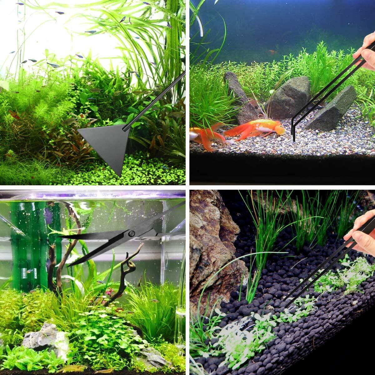 Odowalker水草トリミング 水草 ハサミ 4点セット アクアリウム トリミング アクアリウム 水草 トリミング 水槽 ピンセット ハサミ ピンセット サンドフラッター アクアリウム トリミング 収納バッグ付き