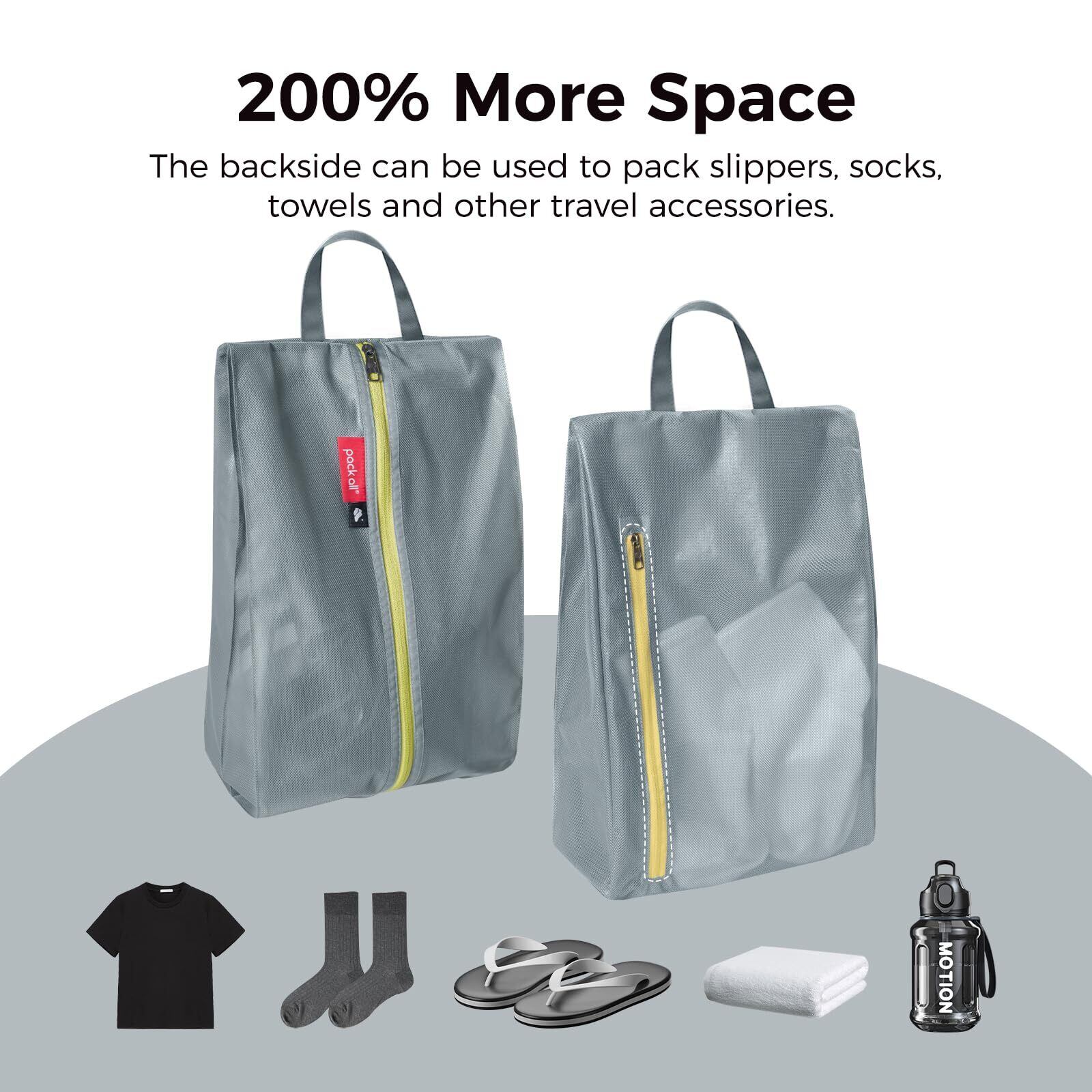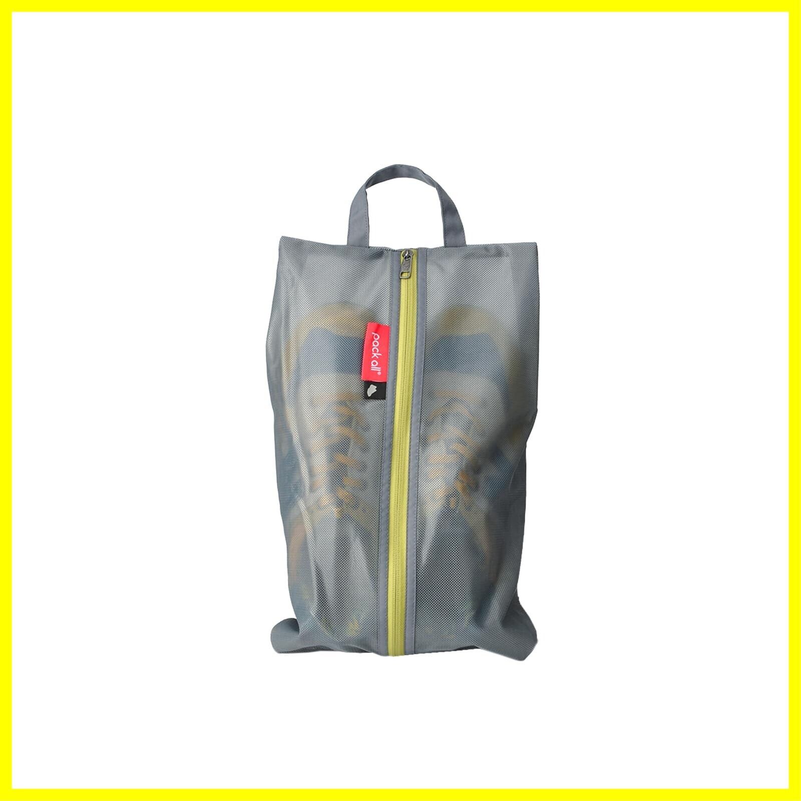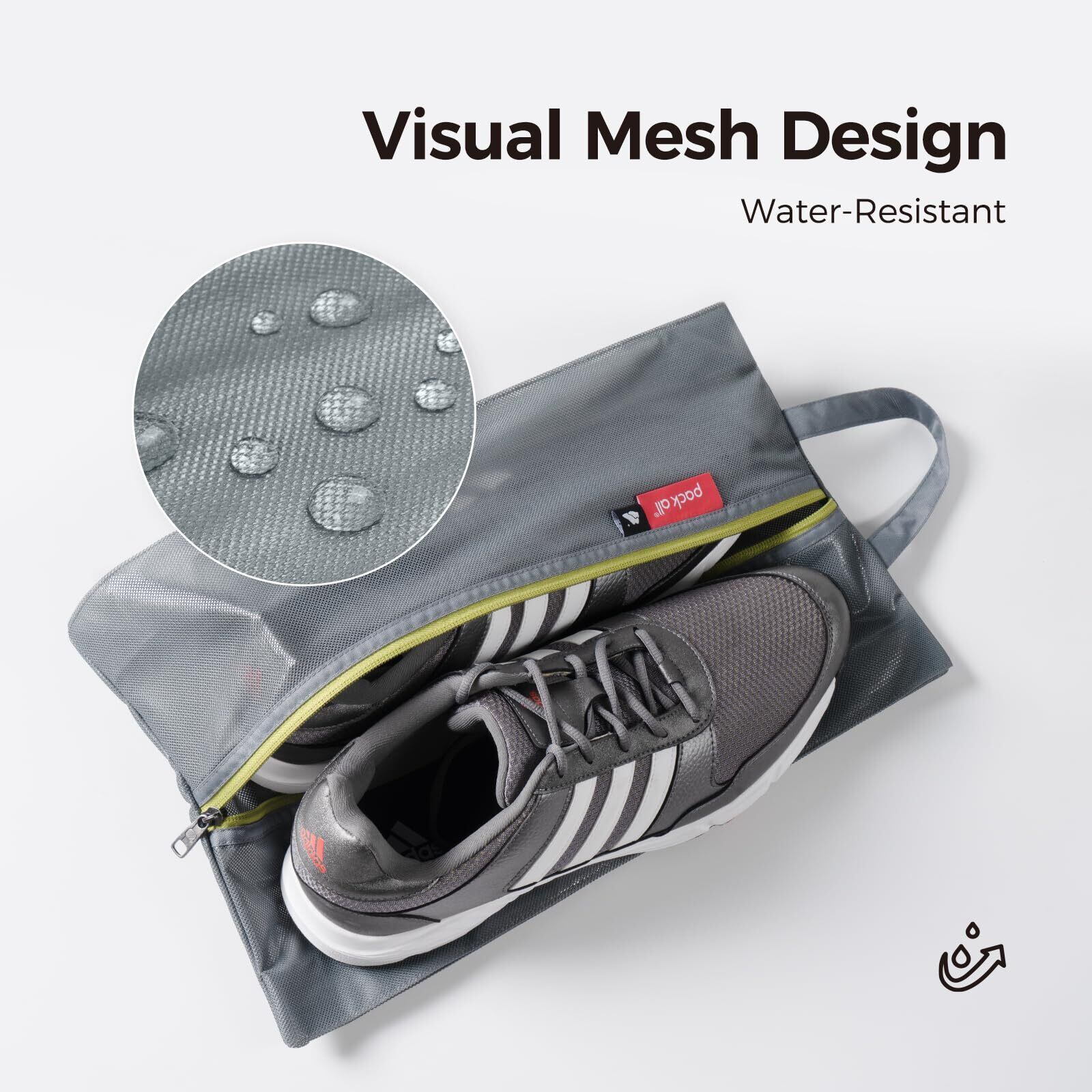 pack all シューズケース シューズバッグ 二重ポケット構造 超軽量 撥水加工 半透明 色とサイズ選び可能 シューズ袋 上履き入れ 靴入れ 衣類入れ 収納バッグ 旅行 出張 スポーツ アウトドア 学校 家庭用 通常版 グレー