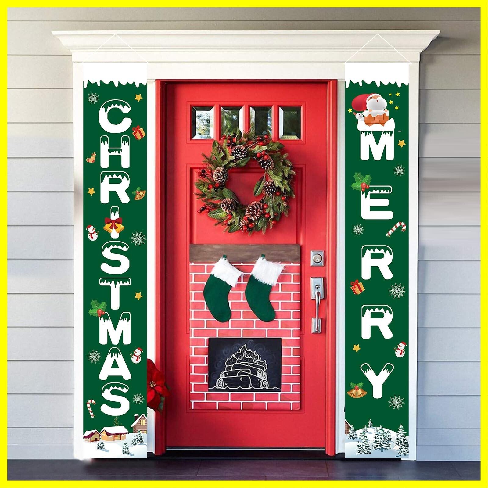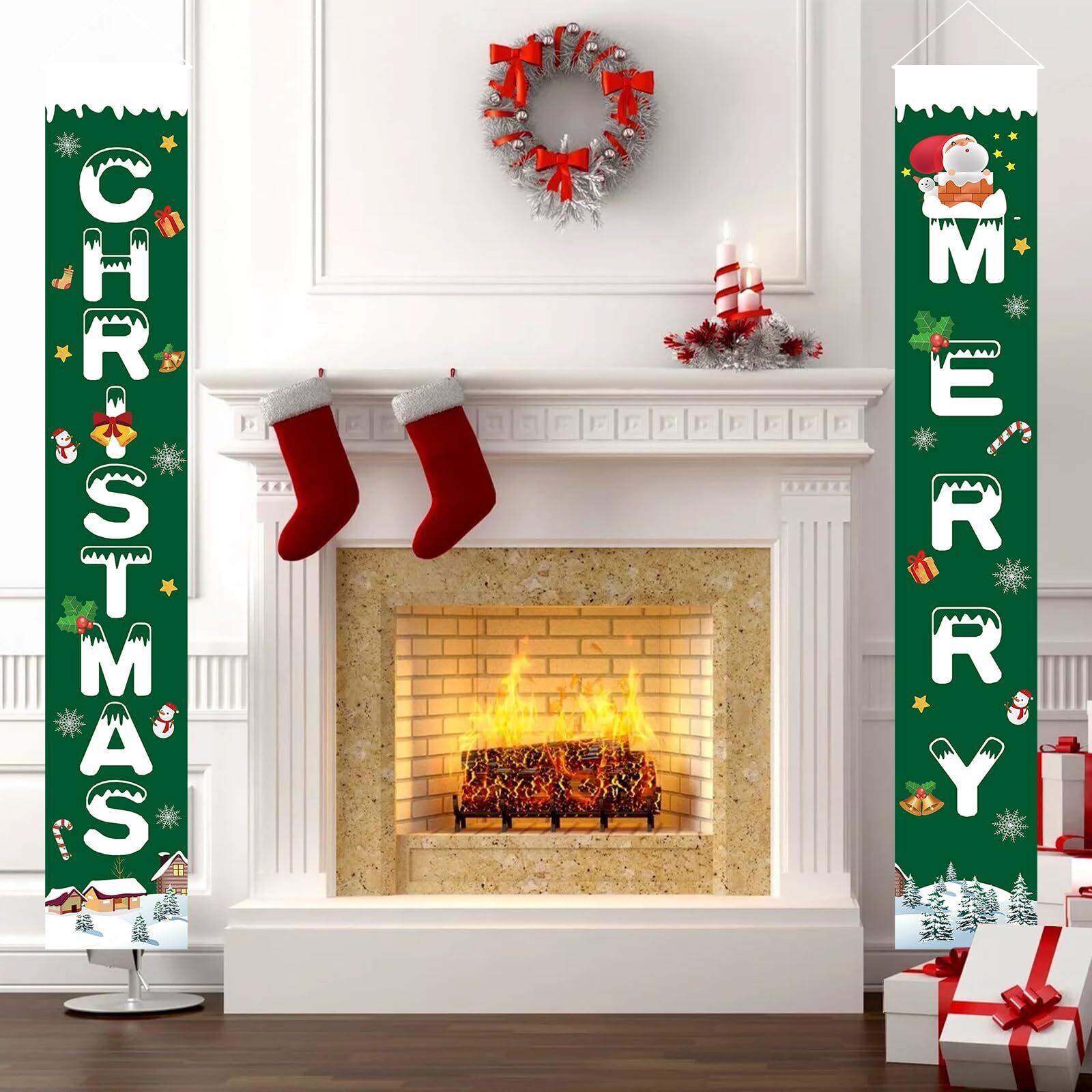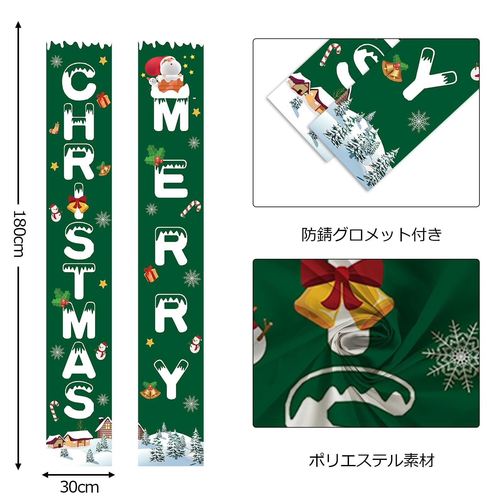 Paready クリスマス 玄関飾り 取り付け具 付き Merry Christmas ポスター 長尺 タペストリー ドアバナー 玄関 装飾 クリスマス 飾り クリスマスデコレーション 壁掛け カーテン フラッグ 吊り下げ 屋内 屋外 緑