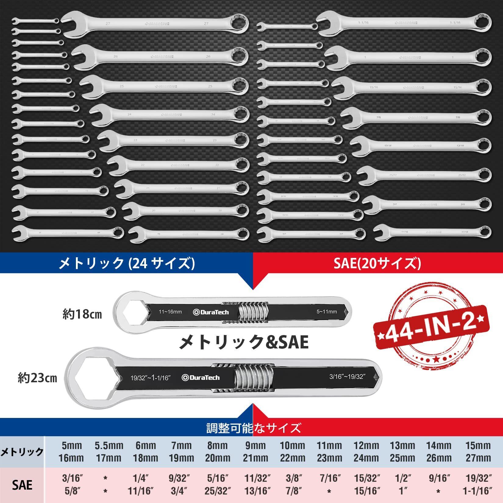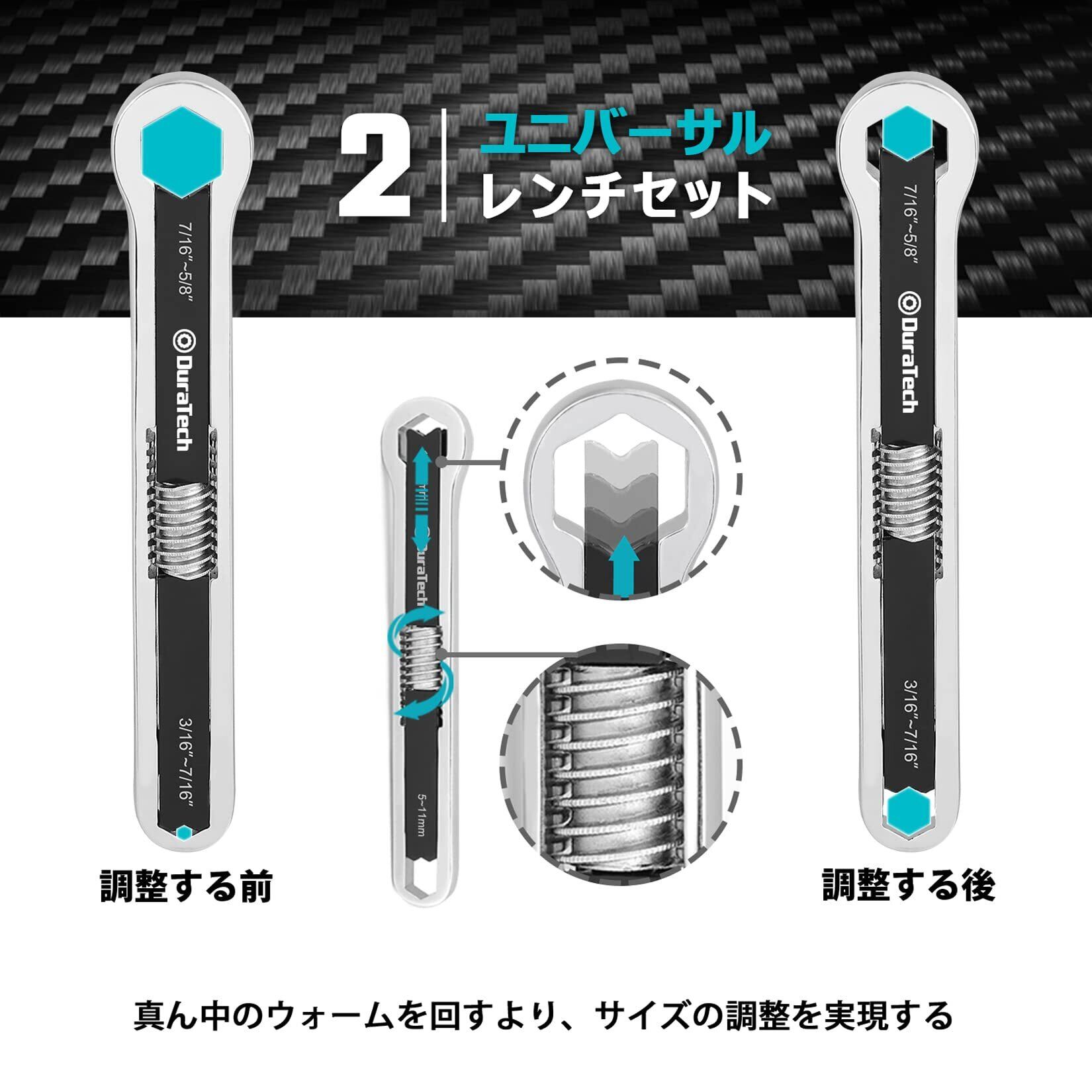 DURATECH 万能レンチ ユニバーサルレンチ 多機能レンチ スパナ レンチ 両用ヘッド 多機能 サイズ調整可能 2本組 5~16m 5~27mm 自動車修理 メンテナンス