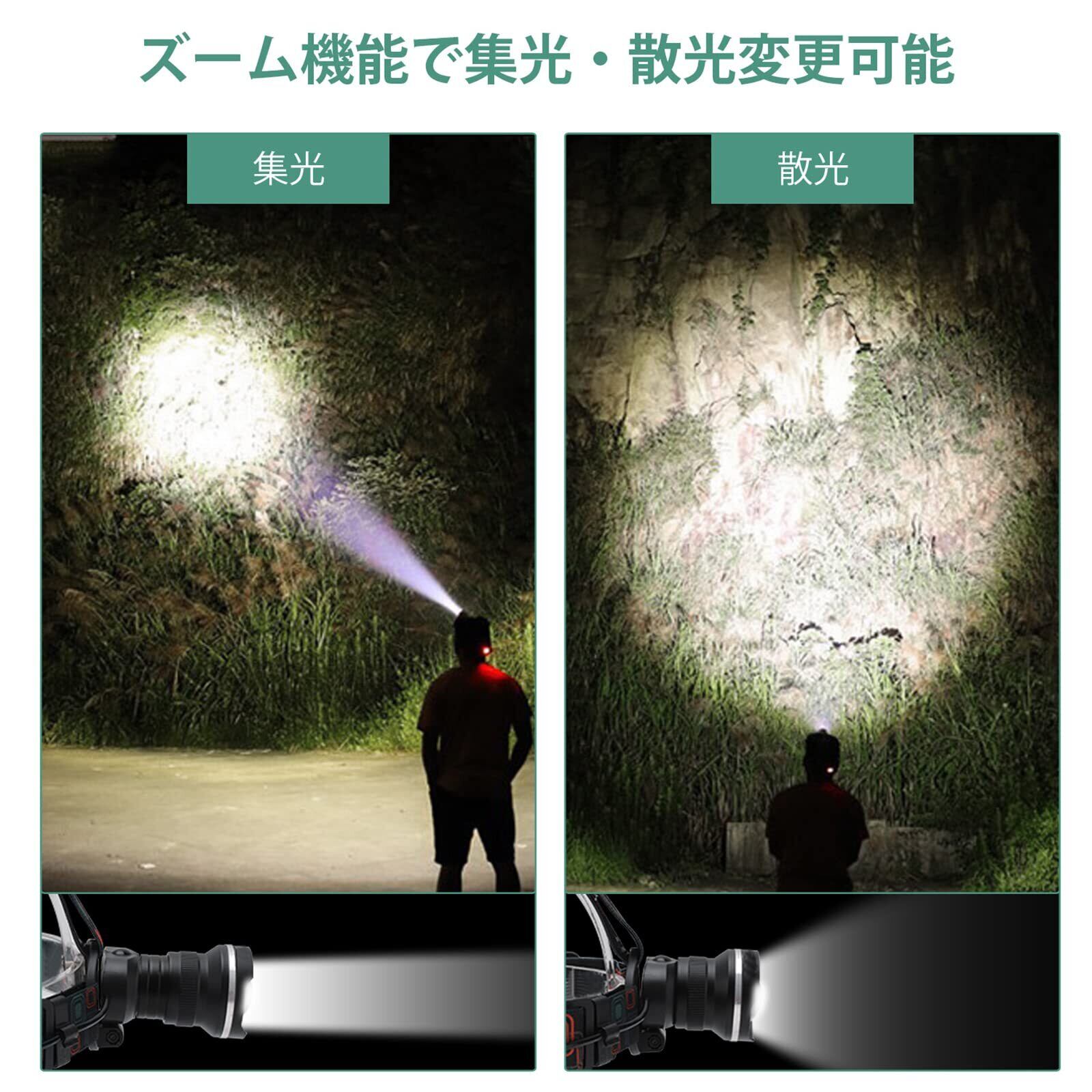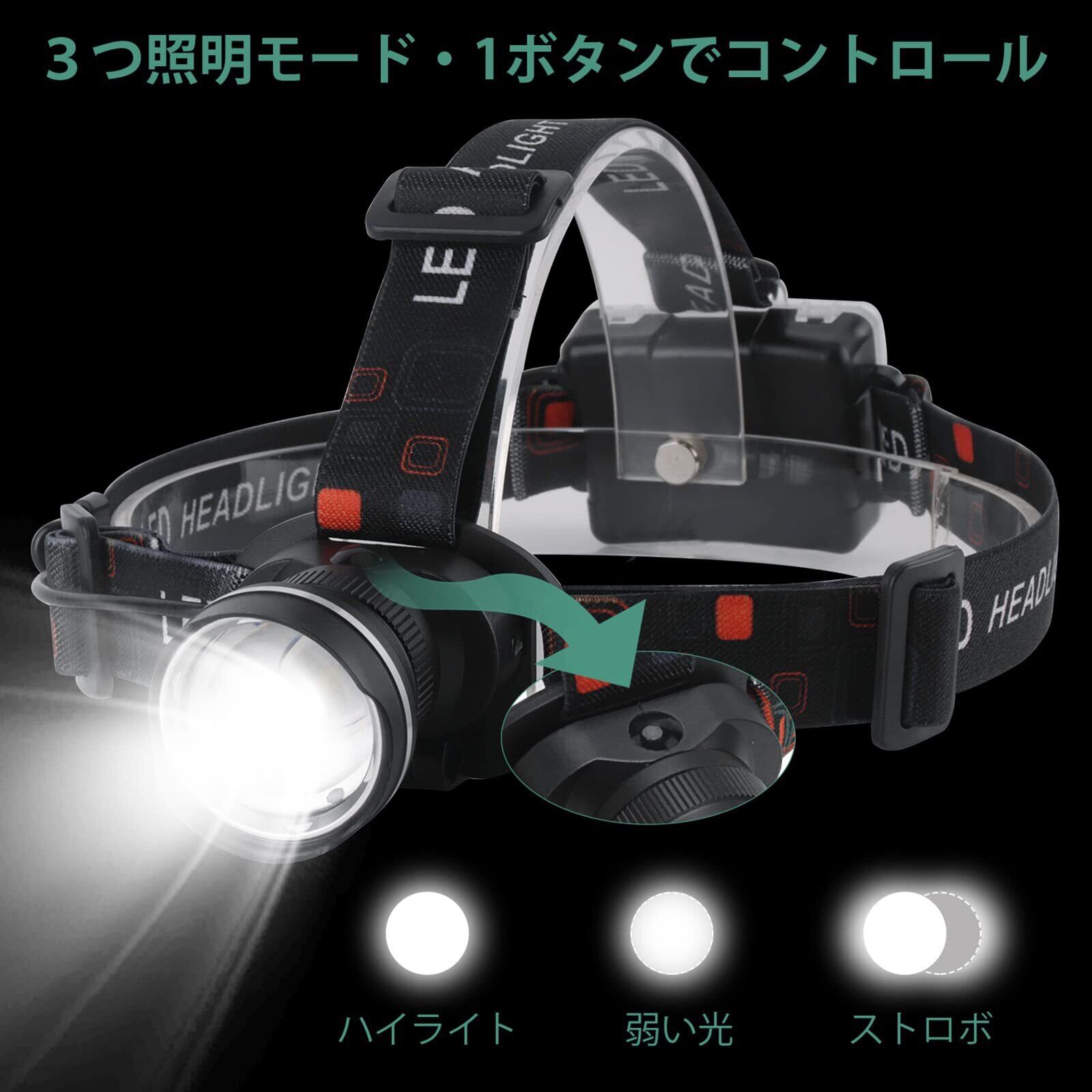 【驚くの輝度・最強材質】LEDヘッドライトは最大1000ルーメン、単3形乾電池三本(別売り)で、照射範囲300メートルに達します。夜には照明効果抜群!ヘッドライトのボディは航空級アルミ合金材料で作られています。ライト表面は硬質の陽極酸化処理を施し、耐腐食性や耐摩耗性に優れています。内部はダメージレス構造を採用し、高さ1.5mの耐衝撃性を備えています,耐久性も最高です,有効な保護本体はダメージを受けません。 ヘッドバンドの素材を完全にアップグレード 。ヘッドバンドの裏側には起毛加工、やわらかな肌へと導きます。 快適さを向上させます。 高弾性のヘッドバンドは、通気性と調整可能な弾性を備えています。長時間ヘッドに着用しても疲れません。