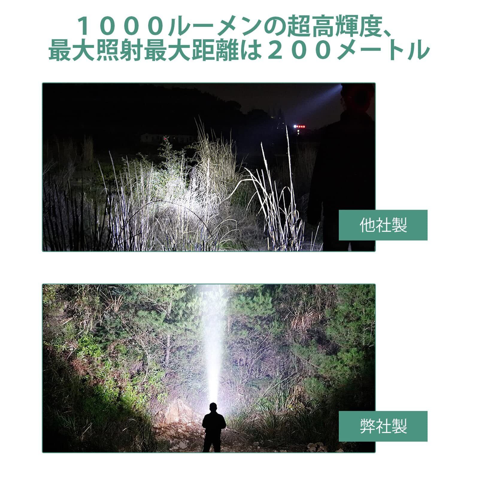 【3つモード】3つモード:強-省エネ-SOS。強モード:1000ルーメンで照らし、照明効果最強。省エネ:300ルーメンで航続時間が長い。SOSモード:明るくて点滅します。防災・停電・震災・地震に大活躍!スイッチを押すごとに適切なライトモードを選択して、簡単にモードを切り替えます!
