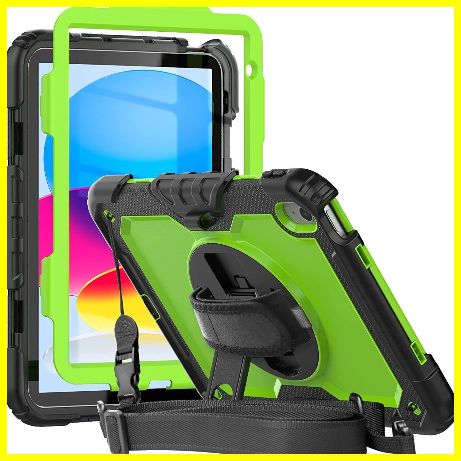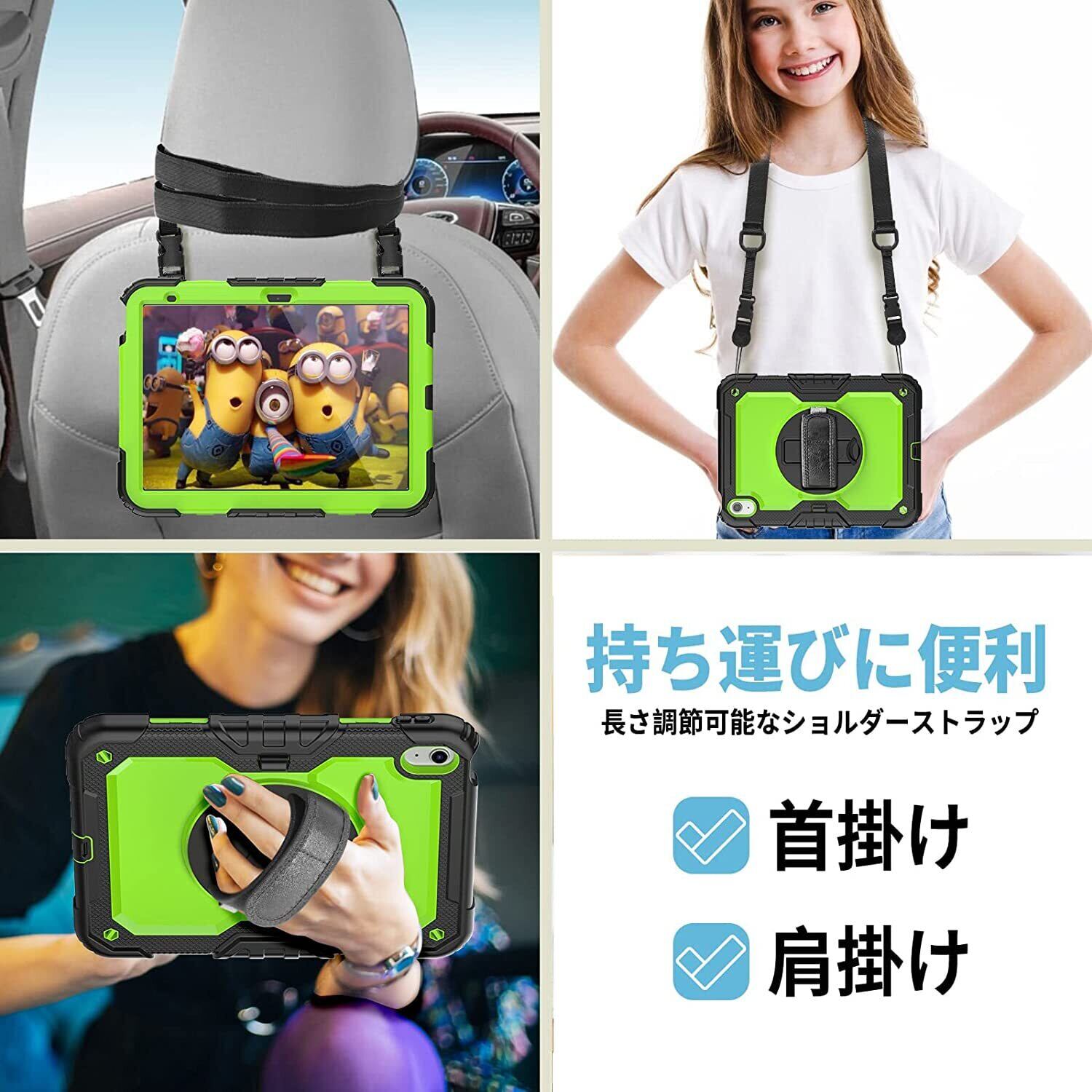 Herize iPad 第十世代/第十一世代(A16) 10.9 インチ ケース2022/2025 保護フィルムペン収納 iPad 10th/11th A2696 A2757 A2777 耐衝撃 頑丈三層鎧 落とす ケース 360°回転スタンド 360度回転握り方 調節可能 柔らかい 丈夫 ハンドストラップ 防塵 多機能 実用 強い衝撃保護性能 子供 快適