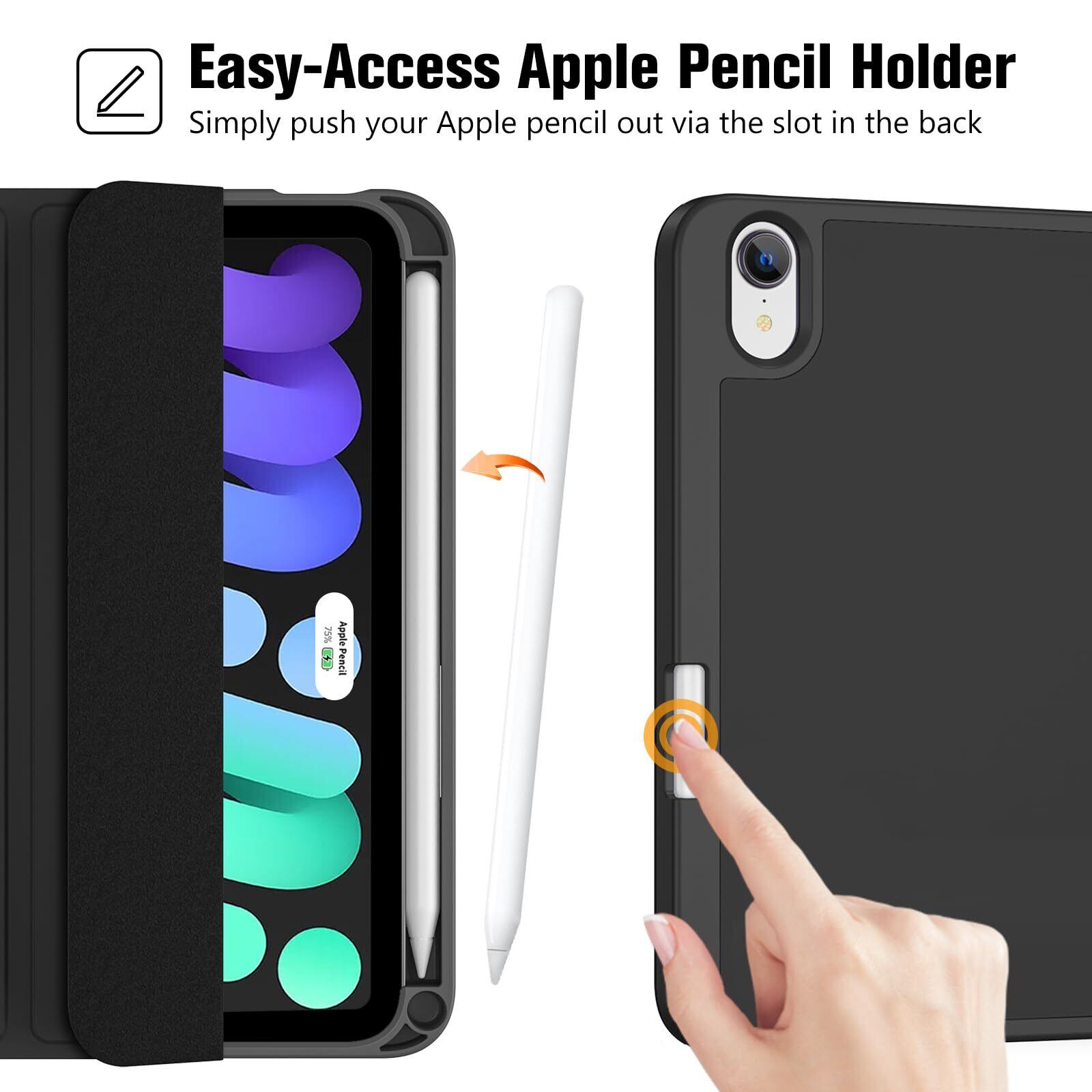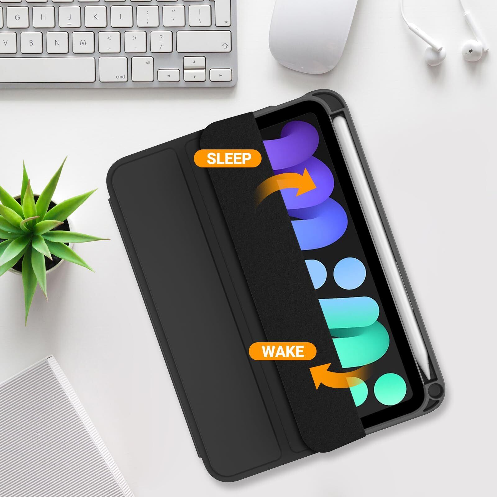 ProCase iPad Mini A17 Pro 第7世代 (2024発売) Mini6 第6世代 (2021発売) ケース 8.3インチ ペンホルダー付き オートスリープ/ウェイク機能 耐衝撃 三つ折りスタンド 適用機種:iPad Mini A17 Pro 第7世代 2024、iPad Mini 6世代 2021 - ブラック