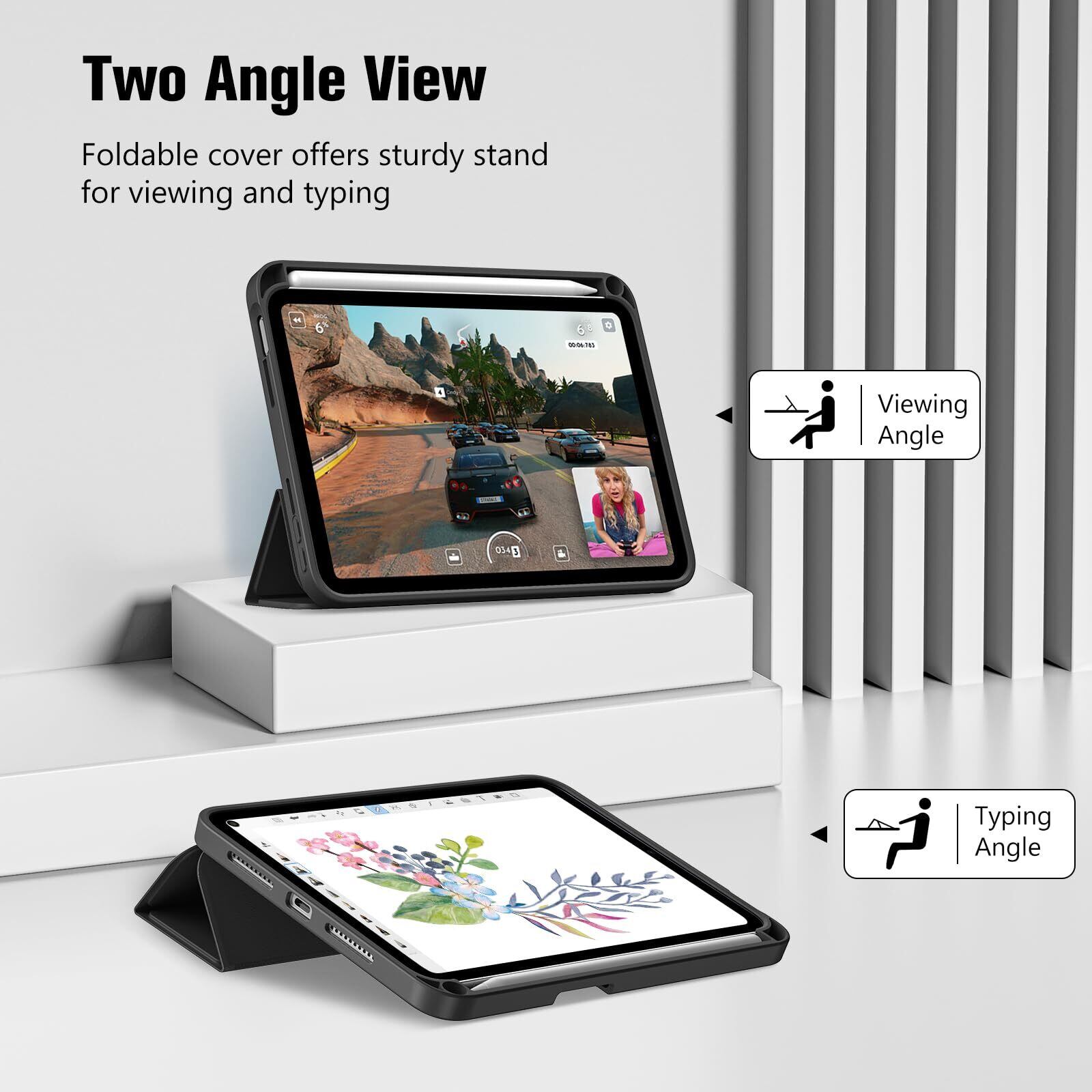 視聴モードとタイピングモード:3つ折りのフロントカバーにより、デバイスを視聴とタイピング時の2つの立ち位置に調整できます。