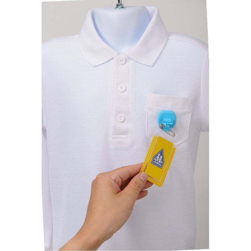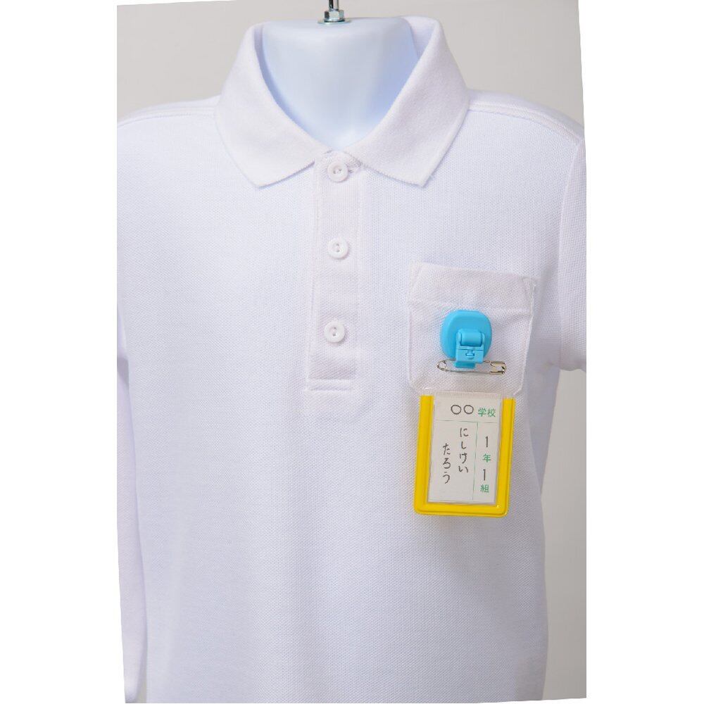 こちらは安全ピン型の名札であれば取り付けられるようになっております。全6色。