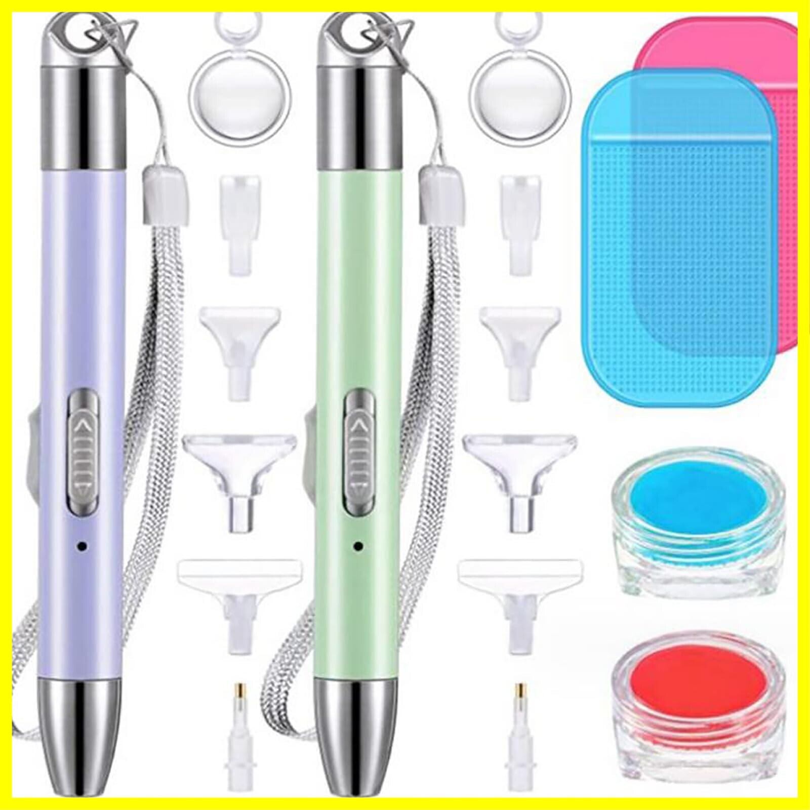【セット内容】ダイヤモンドブラシ2個、交換用ペン先12個、滑り止めパッド2個、粘土収納ボックス2個、ペインティングワックス6枚。