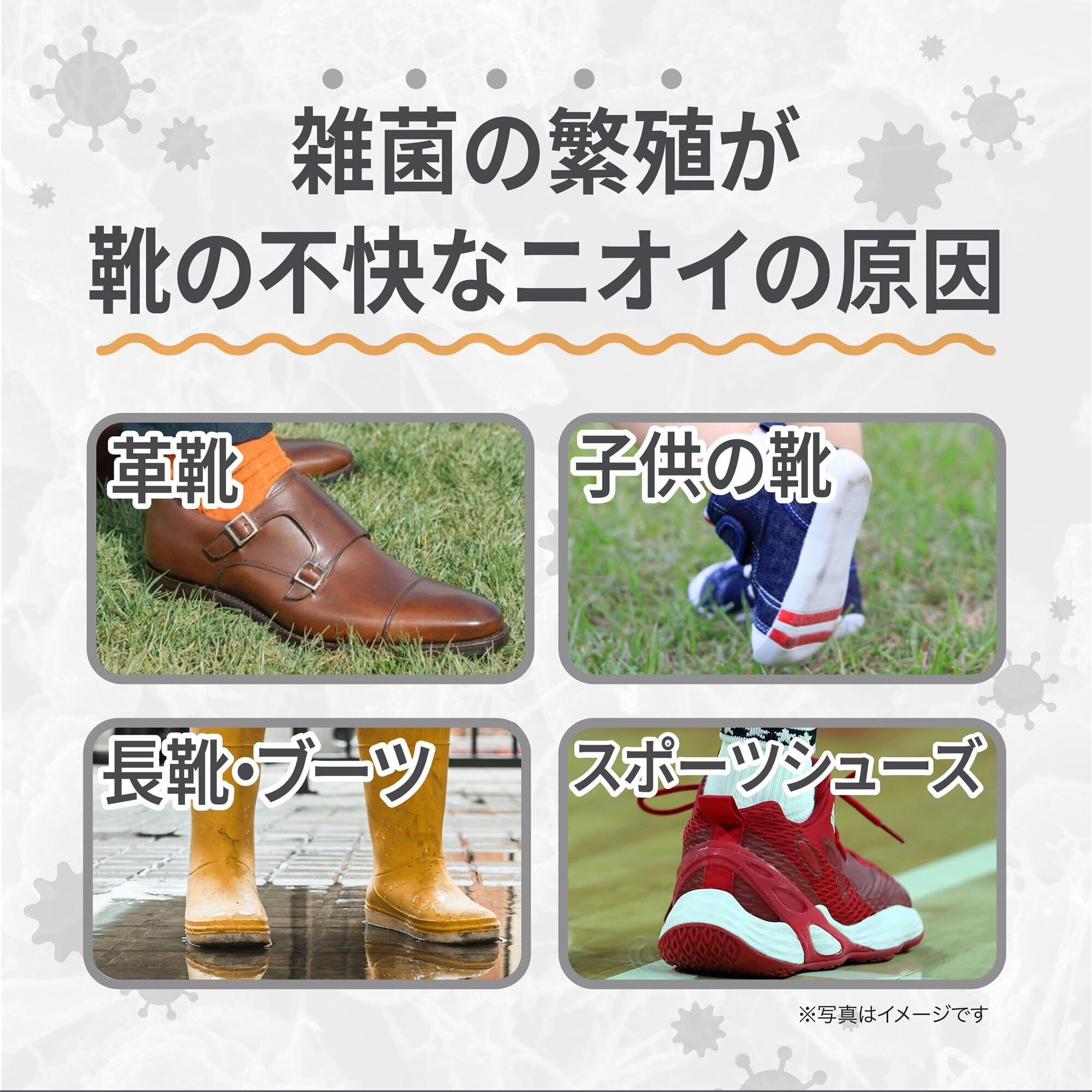 お出かけ前や家に帰ってきた時に靴の中に振るだけ! 靴の中に振りかけるだけで手軽に消臭。靴用の粉末タイプ消臭剤です。抗菌効果! ペパーミントの香りニオイの原因となるイソ吉草酸、アンモニア、酢酸に効果を発揮します。