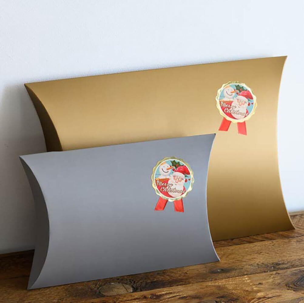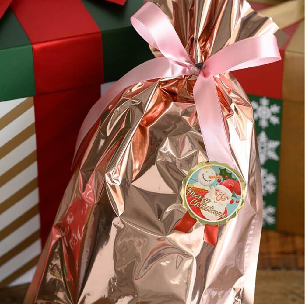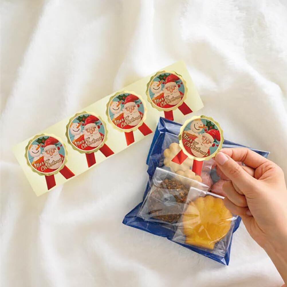 愉快なサンタクロースとスノーマンが可愛いクリスマスのリボン型シールです。貼るだけで簡単にクリスマスギフトの完成です。はがれやすい梨地素材にもお使いいただける強粘着タイプのクリスマスギフトシールです。
