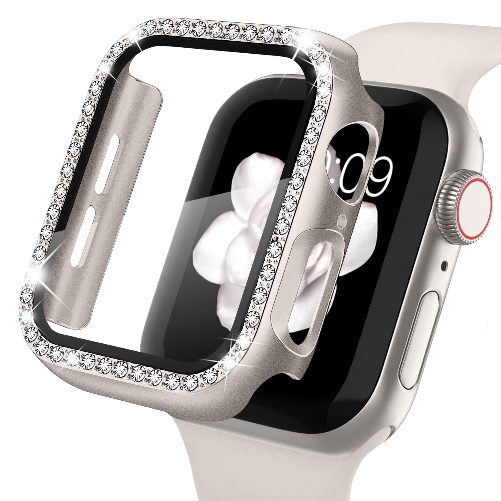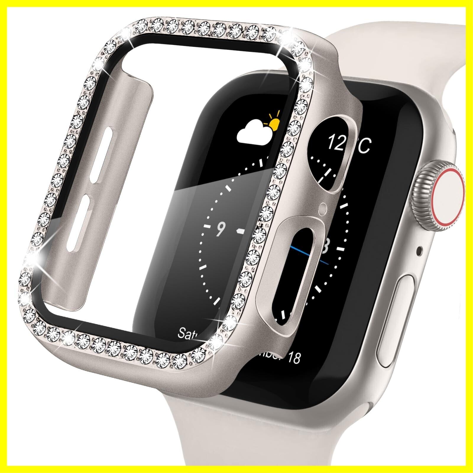 【キラキラカバー】WASPO コンパチブル iWatchケース 41mm 保護フィルム付き クリスタルダイヤ付き アップルウォッチカバー 女性専用 全面保護ケース(41mm Series 9/8/7,スターライト)