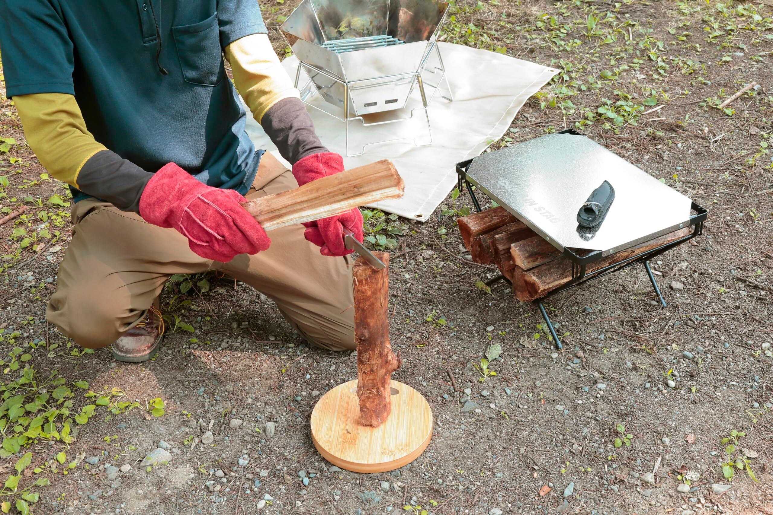特徴:薪割り台として平らな所で薪を垂直に置いて安定させ、薪割りが楽に出来ます。鍋敷きとしての使用も可能。便利な収納袋付き。