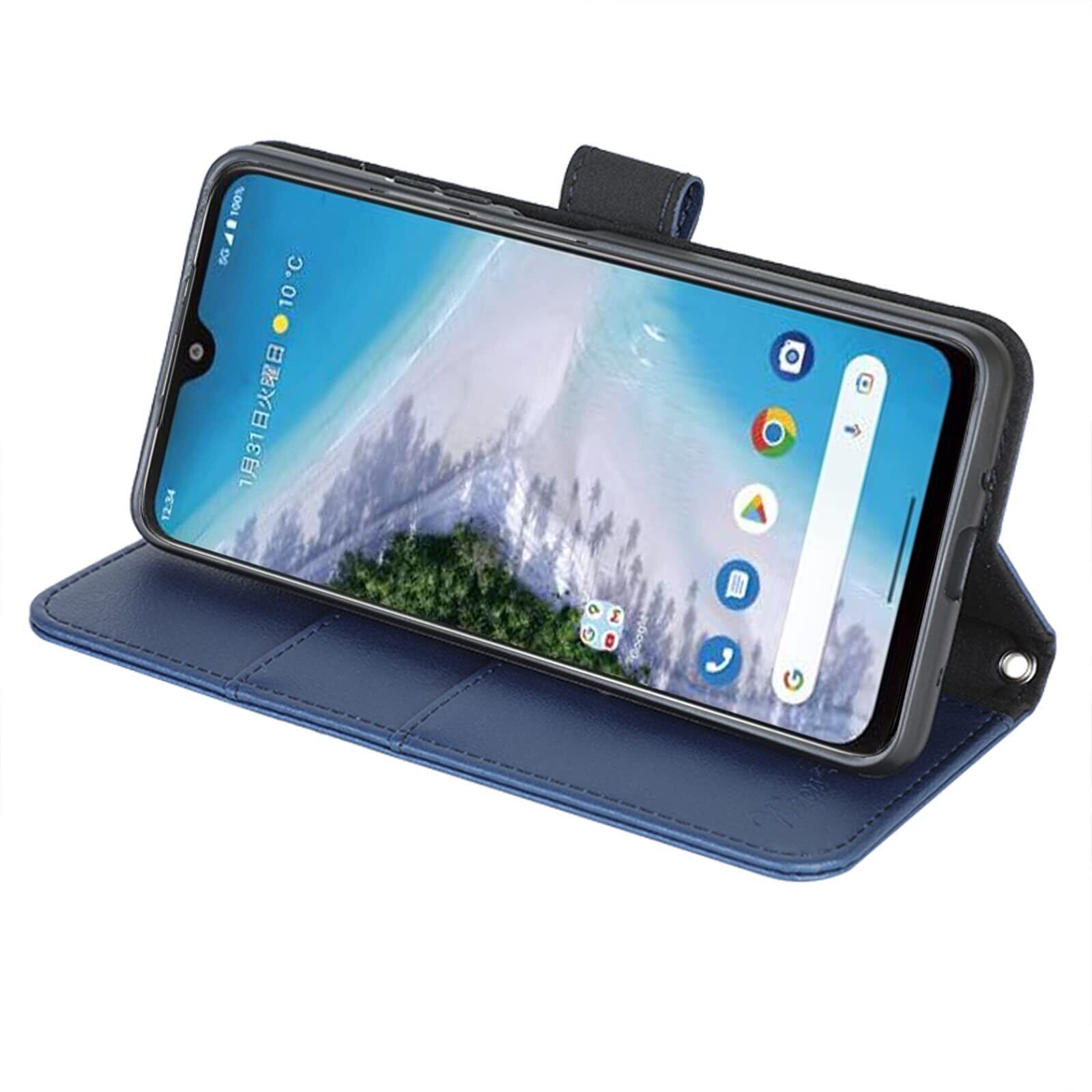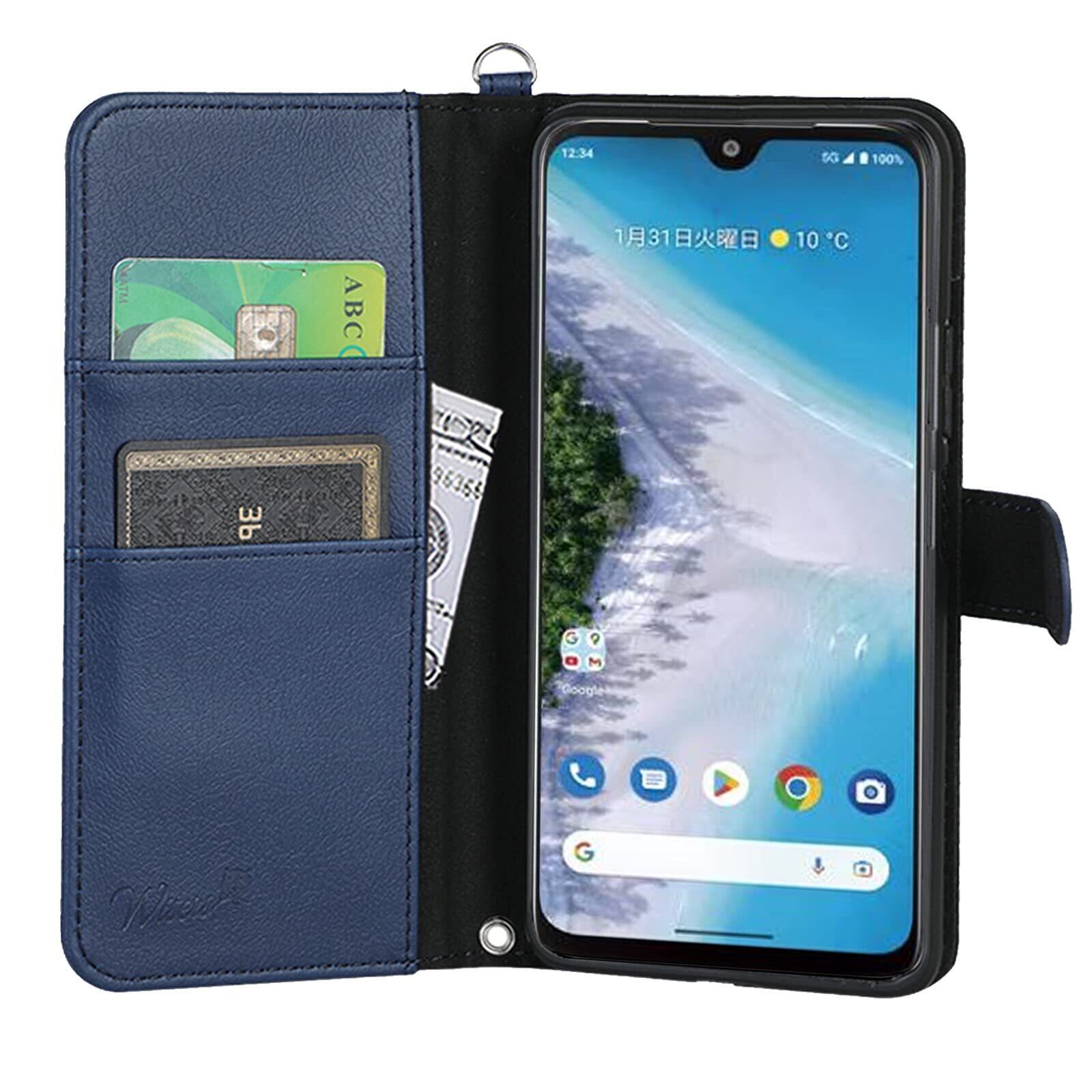 wisers Android One S10 対応 手帳型スマホケース (ダークブルー) ストラップ 2種付き (ハンドストラップ/ネックストラップ)
