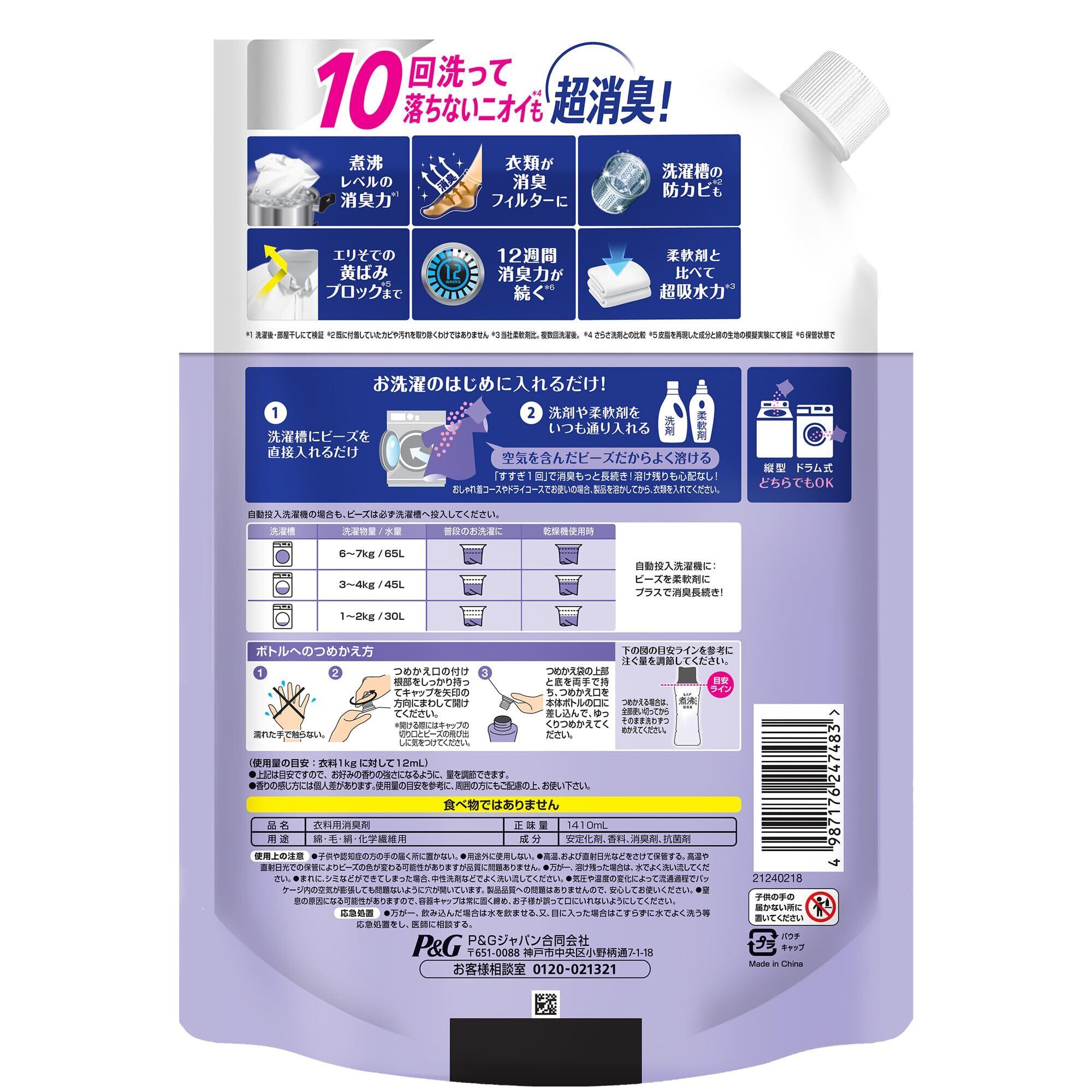 レノア 煮沸レベル消臭 抗菌ビーズ 消臭+防カビ クリーンフレッシュ 詰め替え 1,410mL [大容量] 柔軟剤と一緒に使って効果長続き