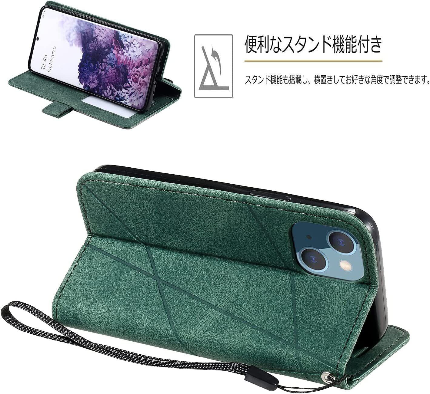 iPhone ケース 手帳型 財布型 カード収納 スタンド機能 サイドマグネット TPUケース 軽量 ストラップホール 収納力 QI充電対応 横置き機能 アイフォン レザーケース ソフトシリコン 全面保護 (iPhone15, グリーン)