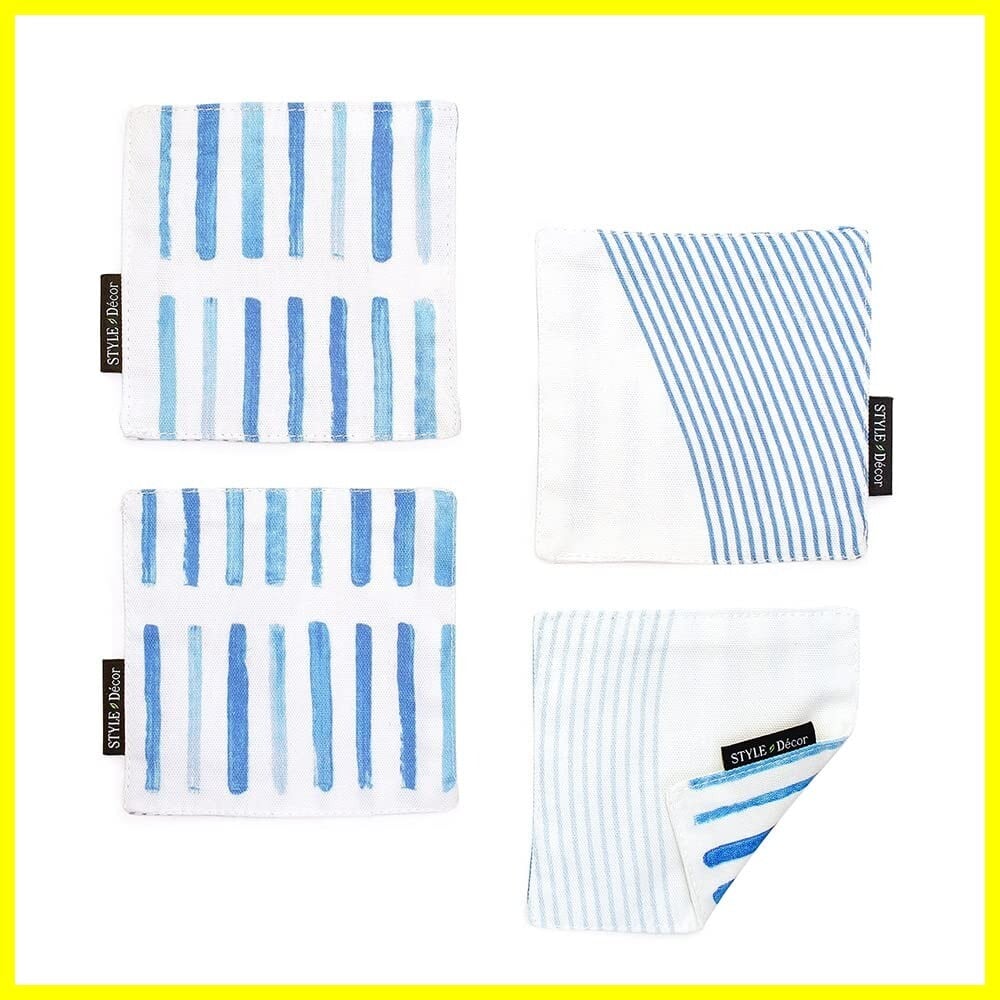 スタイルデコール(STYLE Decor) コースター リバーシブル おしゃれ 布 4枚セット 洗える 北欧 マリン ブルー W3000120