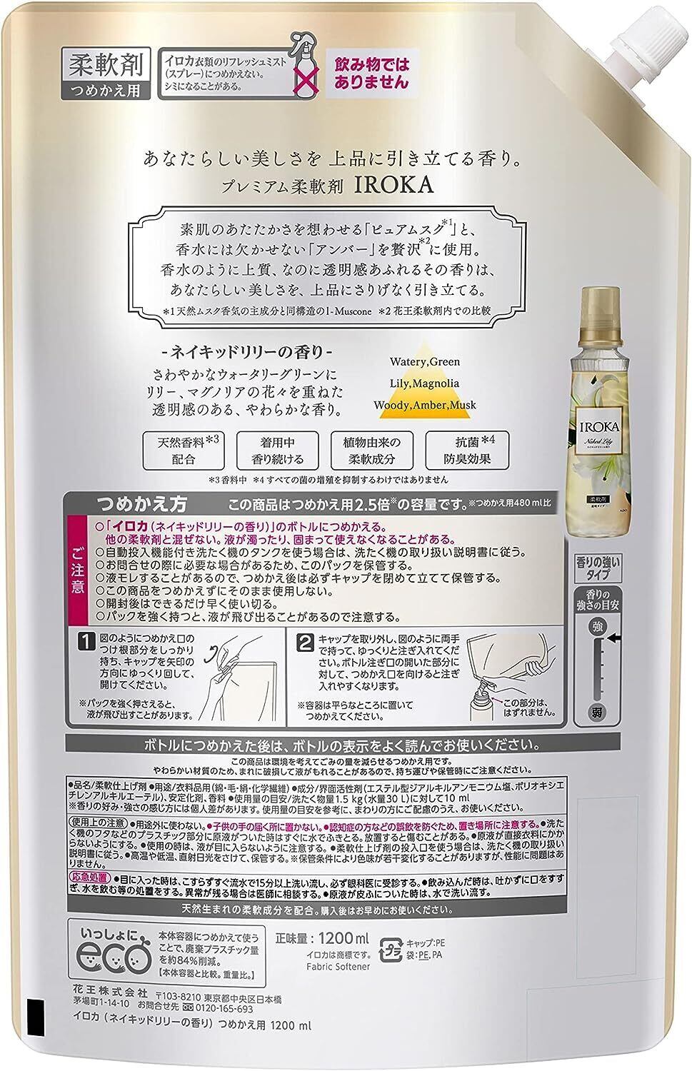 IROKA フレアフレグランス 液体 柔軟剤 香水のように上質で透明感あふれる香り ネイキッドリリーの香り 1200ml 大容量×2個 Sanno.sterlingオリジナルメッセージカード付き
