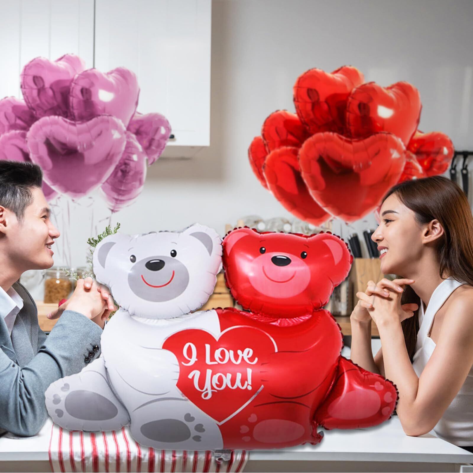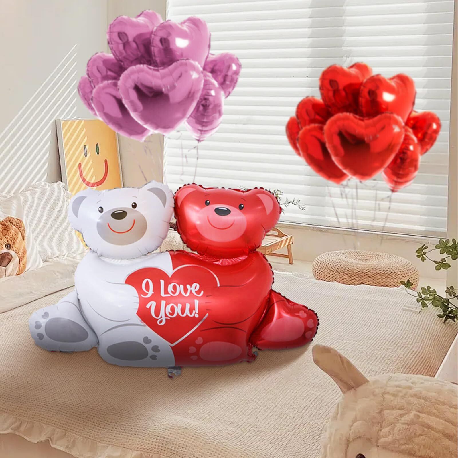 仕様:クマアルミバルーン1個(100 * 76cm),10個の赤いアルミバルーン、10個のピンクアルミバルーン(10インチ)
