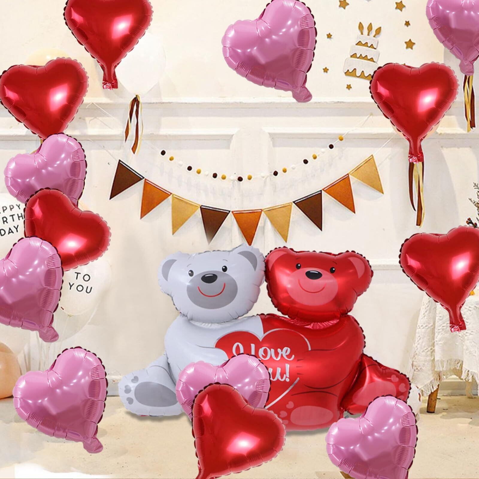 【LEISURE CLUB】バレンタイン バルーン ハート 装飾 風船 21点セット バレンタイン 飾り クマアルミ風船 赤 誕生日 七夕 結婚式 告白 ウェディング パーティー用バルーン