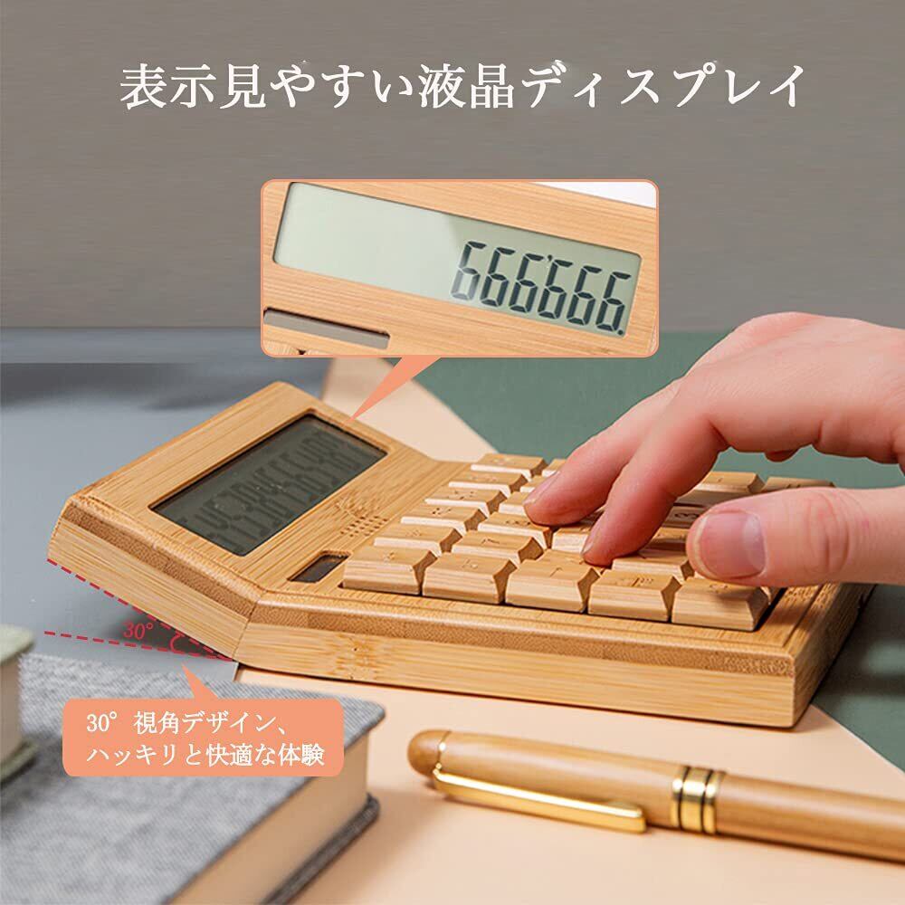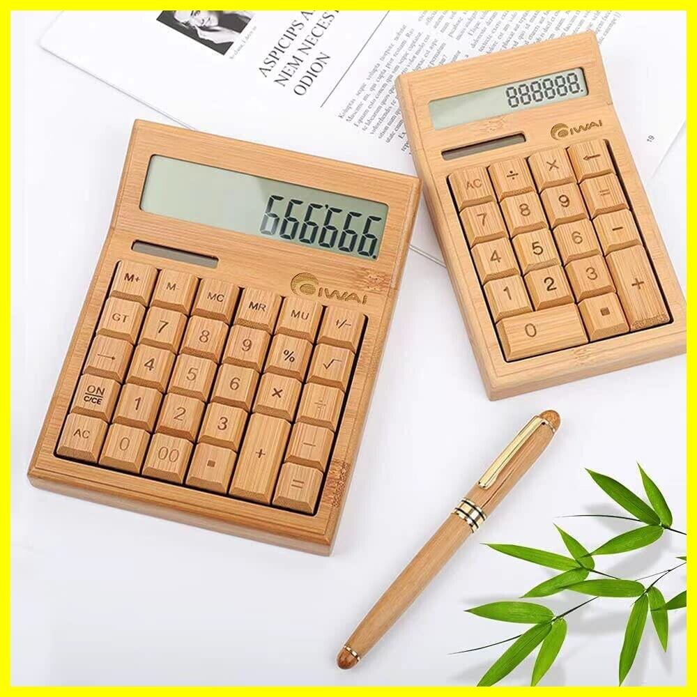 OIWAI 電卓 おしゃれ 卓上電卓 木製 計算機 タッチが良い大きめキーボタン ソーラー給電式 ボタンバッテリー補助電池付 クリエイティブ ナチュラル プレゼント 開店祝い 竹製 (13.5*17.5)