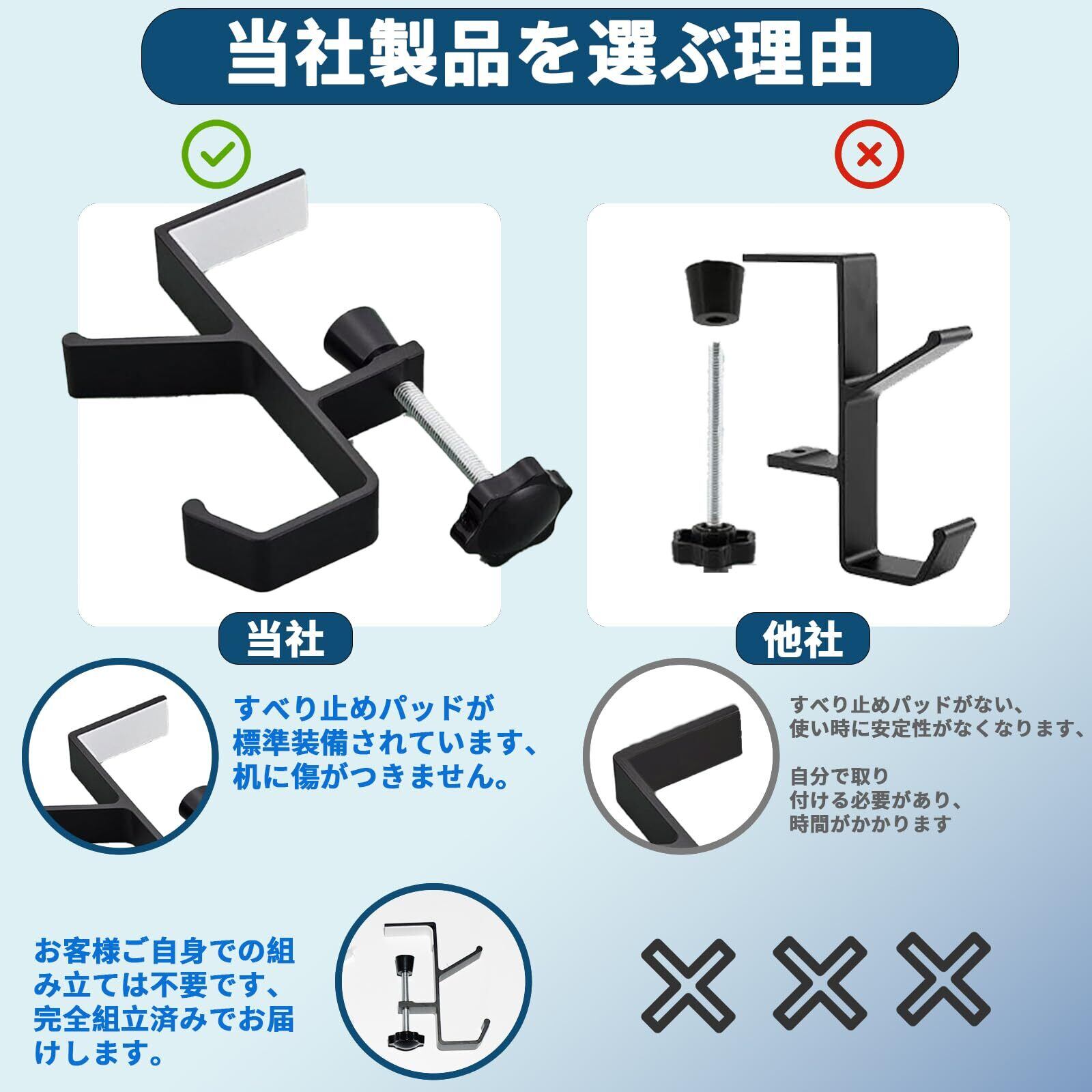 2個セットオフィス用品 事務用品 テーブルフックバッグハンガー カバン掛け 圧倒的な強度 耐荷重20kg 穴あけ不要 フックずり落ち防止 (セット-B)