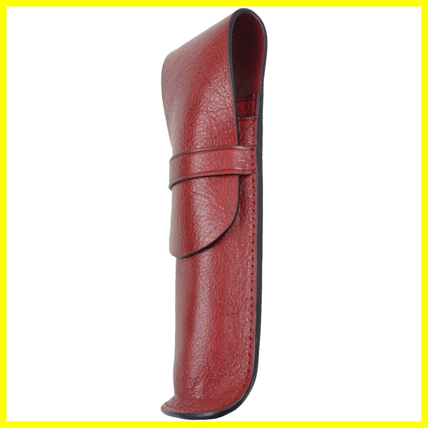 [Dom Teporna] 本革 ペンケース 2本差し 万年筆 シンプル おしゃれ イタリアンレザー コンパクト 筆箱 ペンホルダー 文房具 レッド/2本差し
